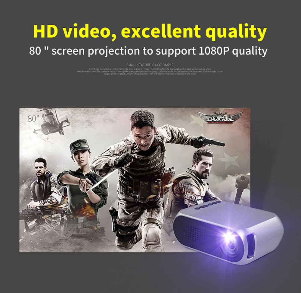 Модель: YG-320 Тип дисплея: ЖК Оригинальное Разрешение: 320x240 Разрешение поддержки: 1920x1080 Яркость: 400-600 лм Контрастность: 800: 1 Проекционное отношение: 1,4: 1 Проекционное расстояние: 1,2-3 м Размер изображения: 20-80 дюймов Шкала экрана: 4: 3 Интерфейс: HDMI, USB, 3,5 мм аудио, слот для карт TF Сертификат: CE, ROHS, FCC Лампы: светодиодный светильник Bluetooth: неподдержки Формат изображения: Bmp, ПЗУ, jpeg Видеоформаты: Mp4, rmvb, avi, rm, mkv и т. Д. Аудио формат: Mp3, wma, ogg, aac, flac, ape, wav Адаптер переменного тока на входе: 100-240 В, 50/60 Гц Встроенный динамик: Да Уровень шума (дБ): 24 Совместим с: Sony PS4, Xbox Срок службы лампы: 30000 часов DVB-T поддерживается: нет Поддерживается внешняя подпись: нет 3D: нет Высота штатива: не входит в комплект Вес продукта: 0,2450 кг Посылка Вес: 0,5950 кг Продукт Размеры (Ш x В x Г): 13,26x8,5x4,98 см Размер посылка (Д x Ш x В): 19,70x18,30x8,40 см Посылка содержит: Хост-проектор YG320, адаптер питания, пульт дистанционного управления, av-линия «Три в одном», руководство на английском языке