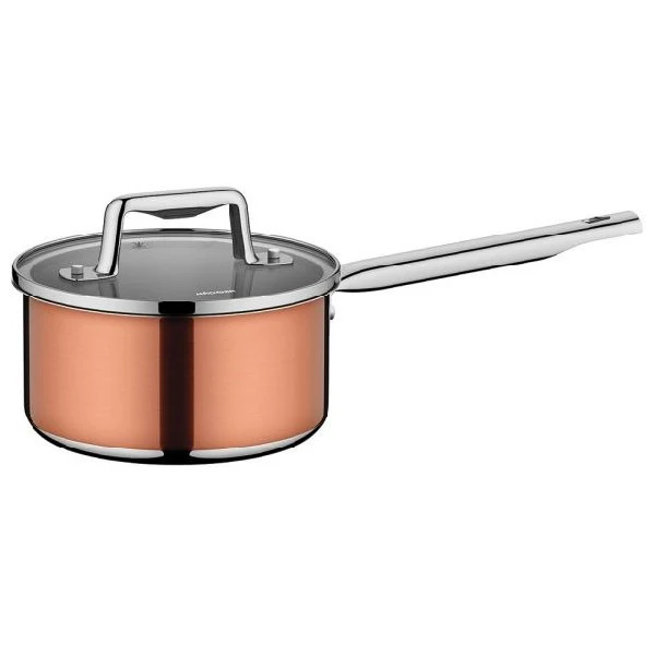 Вся посуда серии Mamp;283;damp;283;namp;225; изготовлена из высококачественной нержавеющей стали 18/10. Прочное трехслойное капсульное дно изделий служит для равномерного распределения тепла по всей площади посуды. Новая современная технология изготовления дна позволила создать плавную линию перехода от стенок посуды к её дну, что делает форму кастрюль особенно изящной. Благодаря необычному внешнему жаропрочному покрытию под медь серия Mamp;283;damp;283;namp;225; будет великолепно смотреться в любом, даже самом изысканном, интерьере. Для изготовления крышки использовалось термостойкое закалённое стекло. На внутренних стенках посуды нанесена маркировка литража для простого определения необходимого объема воды и продуктов. Подходит для всех типов плит, включая индукционные.
