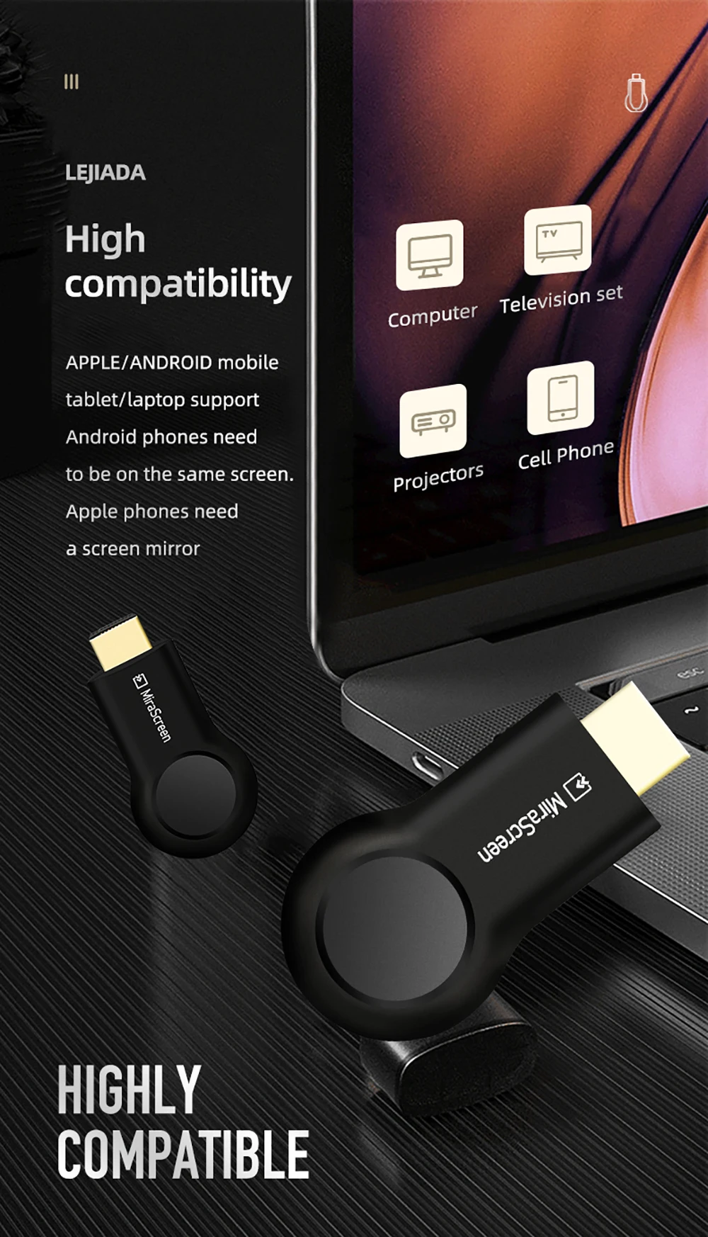 LEJIADA беспроводной дисплей 1080P Apple Android Мобильный ТВ проектор такой же экран HDMI-совместимый высокой четкости Push treasuu