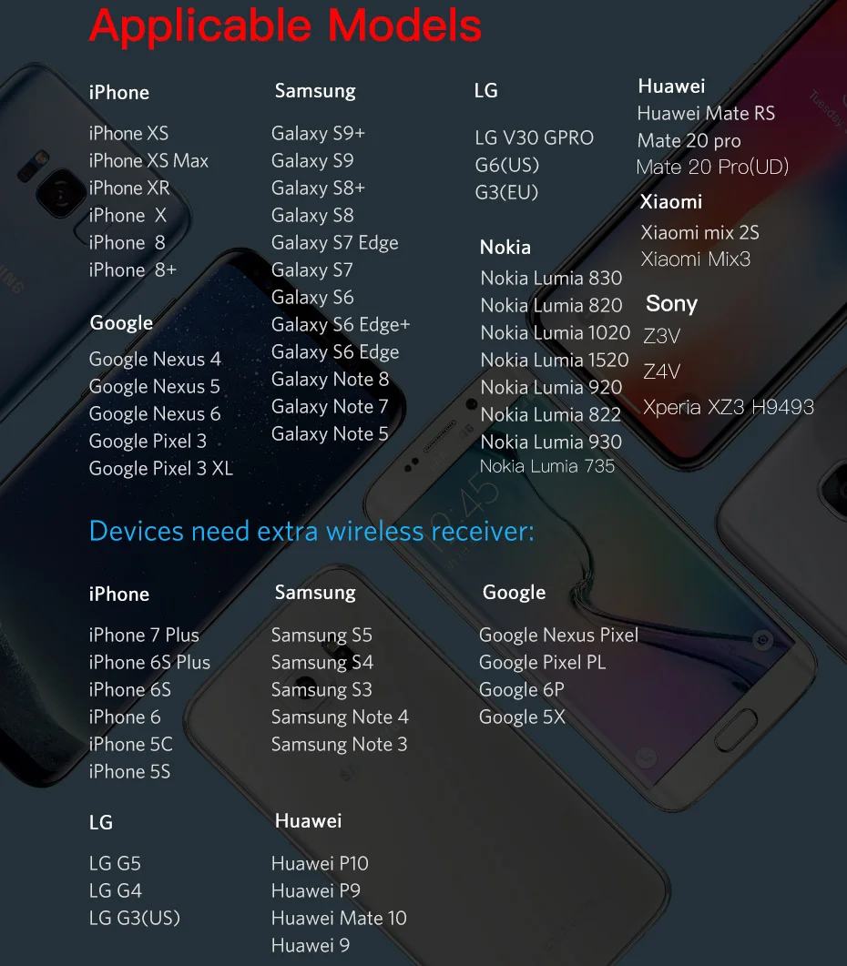 The wireless car charger arm can be opened up to 85mm, which can be easily put into the thickness of phones less than 11mm ,and is suitable for most mobile phones that support wireless charging on the market, even Apple iPhone XS Max