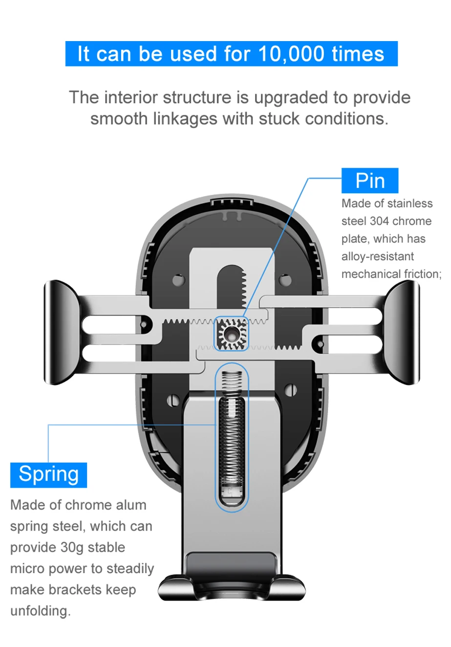 Baseus wireless car charger supports electric deformation and wireless charging. It is both a cool and practical car bracket and a convenient wireless charger. It supports10W MAX power output, which can support Quick Charge 2.0