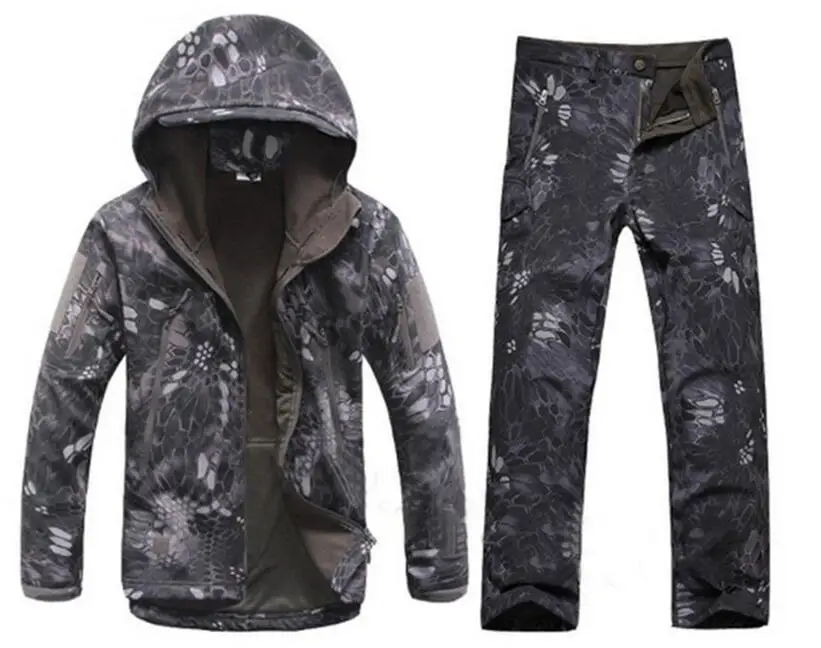 Лидер продаж, Мужская тактическая водонепроницаемая куртка с рисунком акулы, штаны, уличная флисовая куртка для кемпинга, пешего туризма, скалолазания, камуфляжное пальто, брюки, комплекты