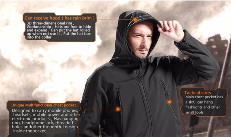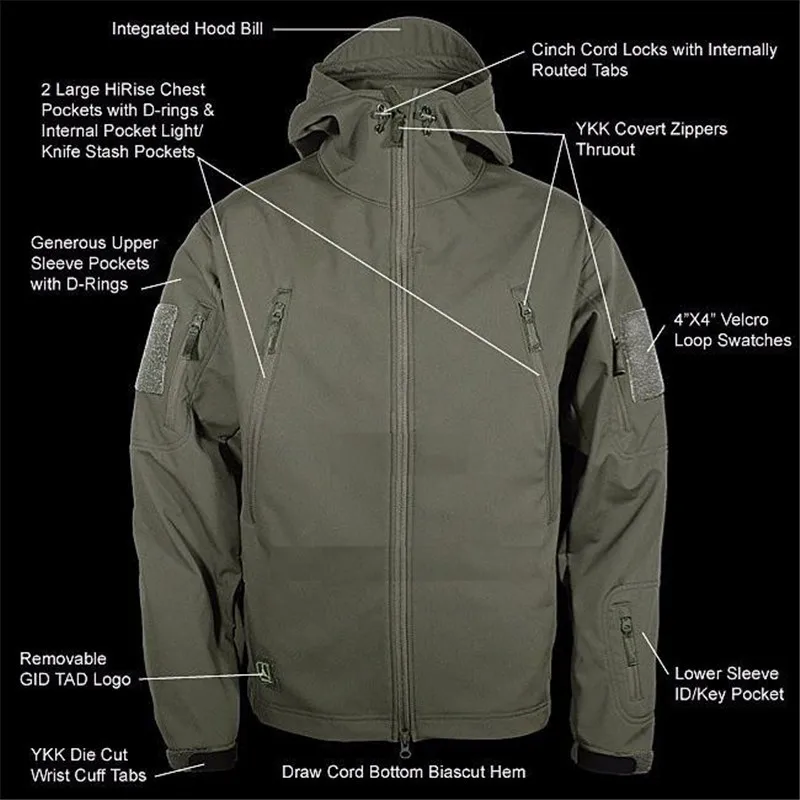 Feature: Camouflage, Waterproof, Windproof, SoftShell, Breathable, Hoody...