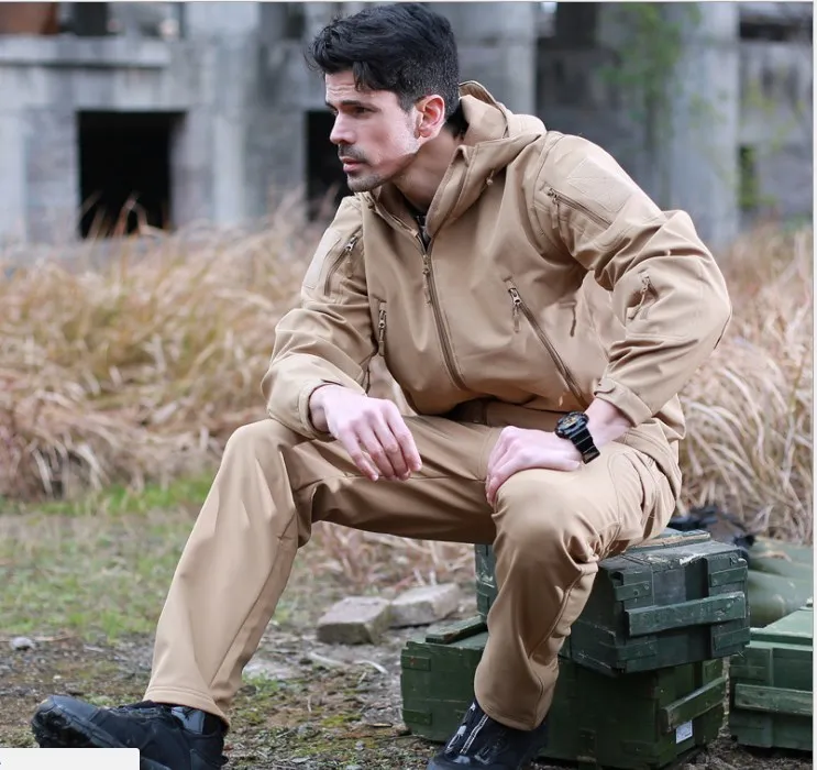Sports Hunting Camping Thermal Tactical Anti-wear Hiking Suits Men Outdoor Sets Waterproof Breathable Softshell Jackets+Pants