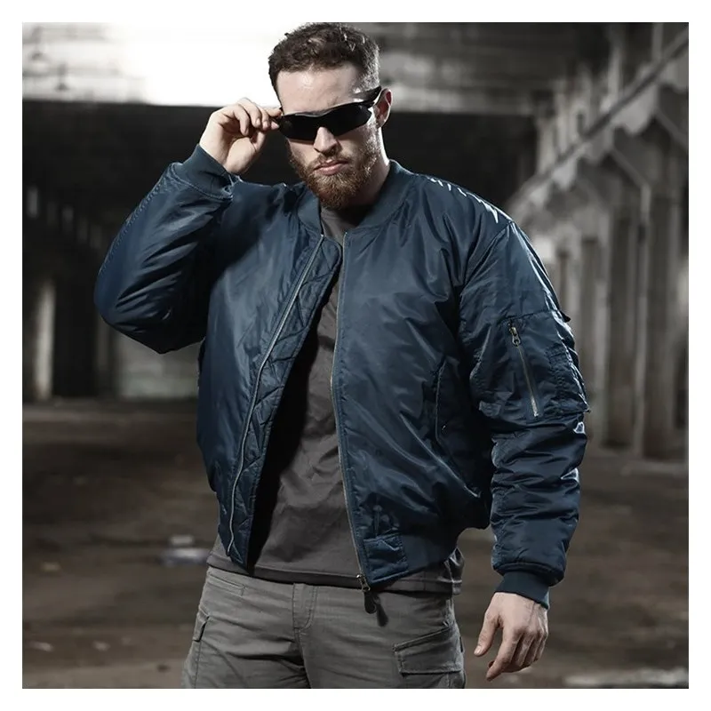 • Куртка для полетов MA-1 имеет 2 передних слэш-кармана и карман на молнии на рукаве