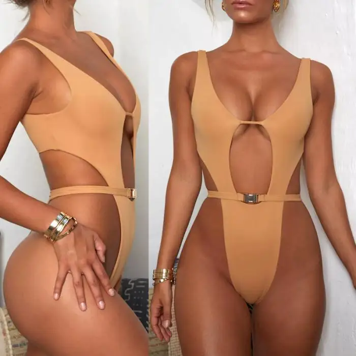 Тип одежды: женский однотонный Монокини, быстро сохнет, высокая эластичность, открытая спина, облегающий купальник для лета