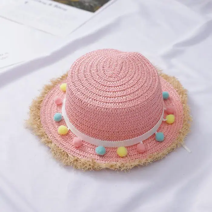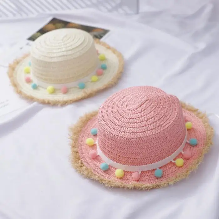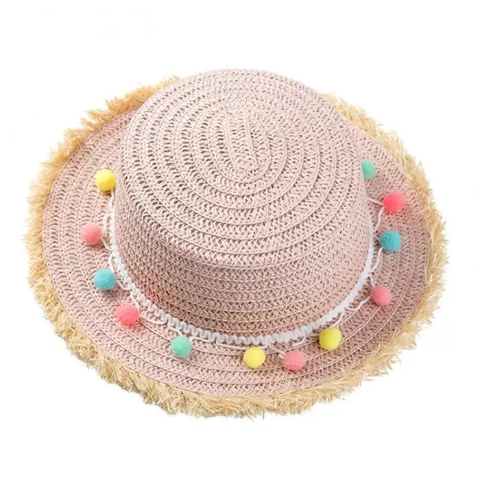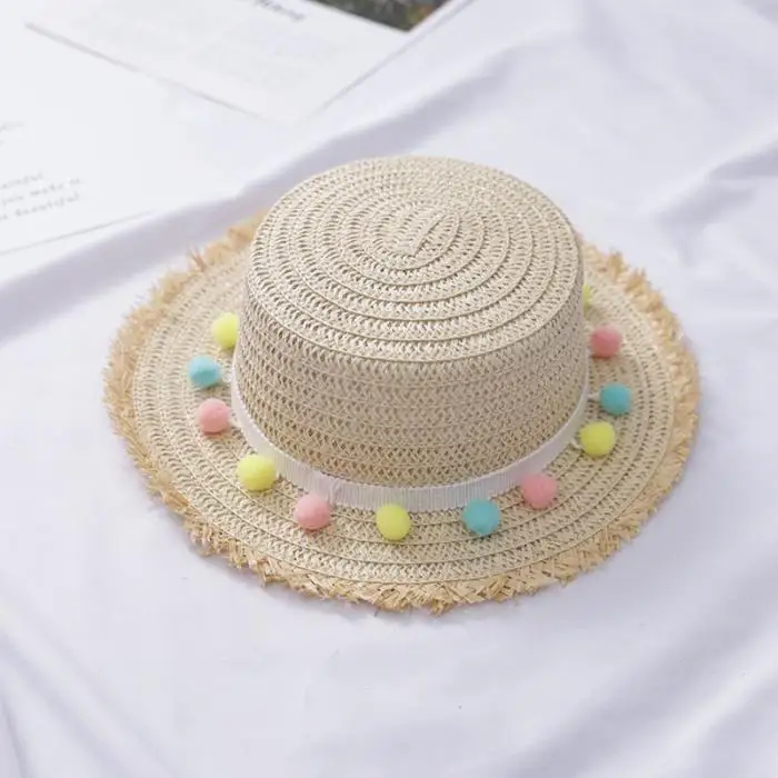 Новая летняя соломенная шляпа для девочек с широкими полями и кисточками, флоппи Панама, кепка для пляжа BF88