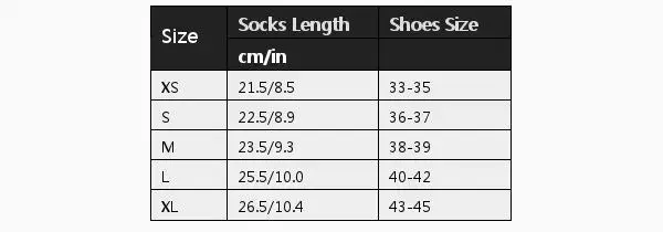 Длина носков (см/дюйм):