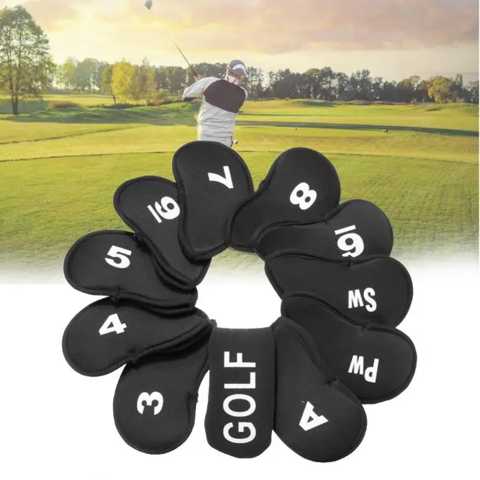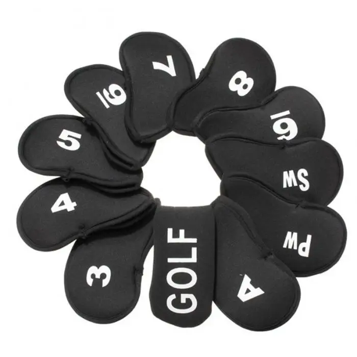 Один набор крышек железных головок, включая 3, 4, 5, 6, 7, 8, 9, PW, SW, A, и крышка клюшки.