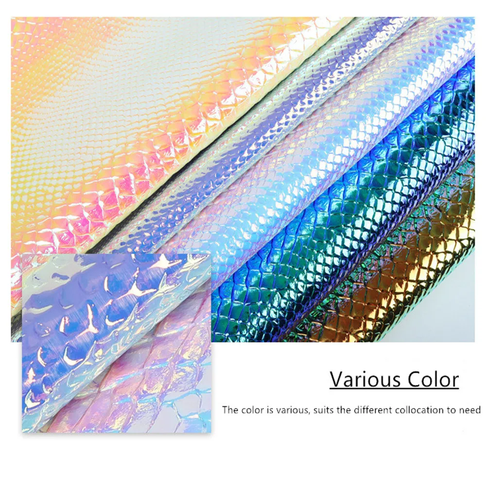 Название продукта: Переливающаяся змеиная кожа с цветными отражениями, змеиная кожа с металлическим покрытием, искусственная кожа для сумки, чехол для ноутбука, бант для волос, рукоделие декоративный материал Размеры: 20*34 см Если вам нужен другой размер, пожалуйста, свяжитесь с нами.