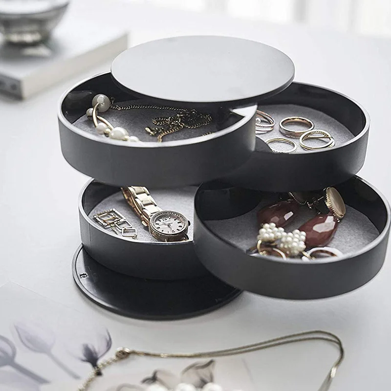 4-Слои вращающиеся ювелирные изделия аксессуары ящик для хранения с крышкой ящик для хранения ювелирных изделий