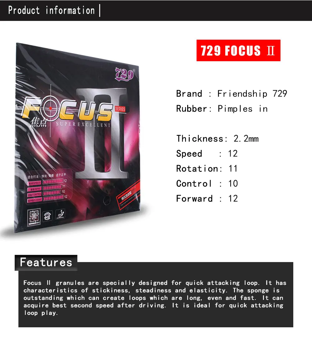 Гранулы Focus Ⅱ специально разработаны для быстрой атакующей петли. Имеет характеристики липкости, стойкости и эластичности. Губка является отличной, что позволяет создать длинные, ровные и быстрые петли. После вождения, можно выбрать лучшую скорость во второй раз. Идеально подходит для быстрой атаки Петля играть.