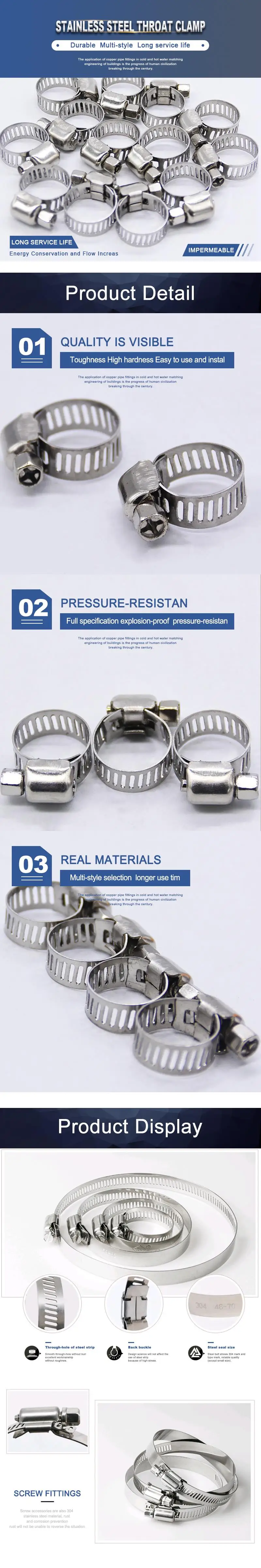 There are 8 kinds of hose clamps in different adjustable diameters that you can choose.