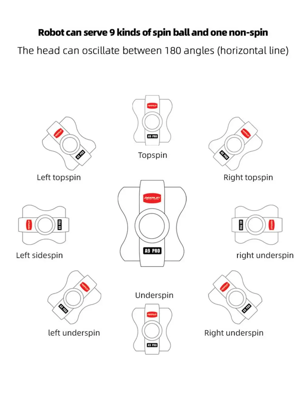 A9 является Беспроводной управления A9-PRO новый блок управления Пожалуйста, обратите внимание: Диплин специально настроил диплин брендовые мячи для настольного тенниса Шарики марки DEEPLIN могут эффективно уменьшить трение с Робот DEEPLIN для настольного тенниса и делает его плавным.
