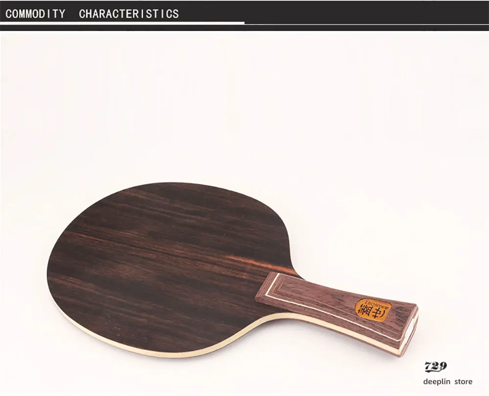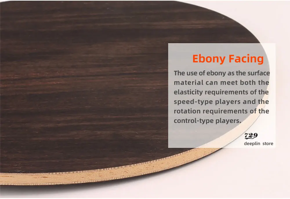 В этих лезвиях для пинг-понга используется Эбеновое дерево в качестве поверхностного материала и елового тюнга и других деревьев, что делает эти лезвия очень хорошими и контролируемыми!