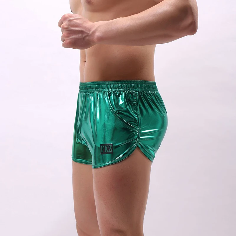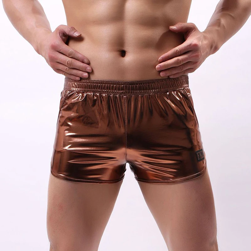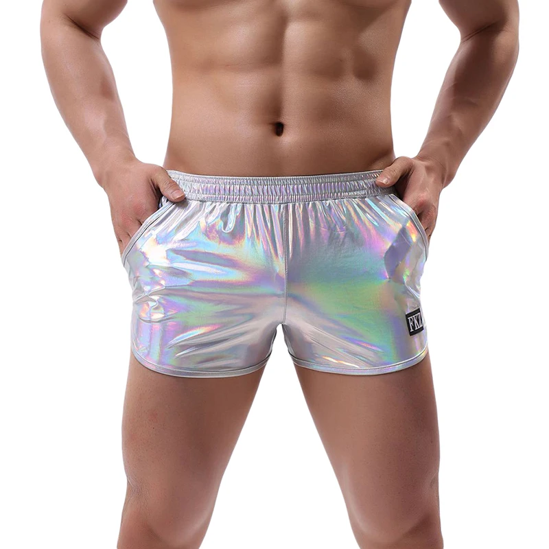 Мужские шорты, блестящие, металлические, с низкой посадкой, боксеры, шорты для сцены, Клубная одежда, костюмы, гимнастический купальник, Homme, нижнее белье