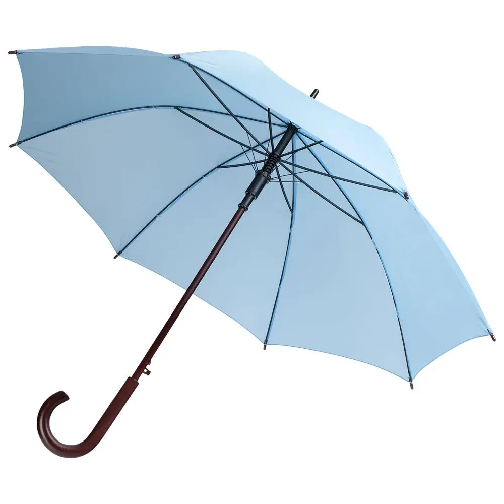Простой, удобный и прочный зонт-трость с деревянной ручкой. Отличный вариант для промо. Зонт-полуавтомат, поставляется без чехла.