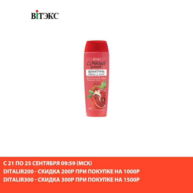 Strong hair delicious volume healthy Shine Shampoo with delicate aroma Garnet thoroughly Cleanses hair, nourishes them along the entire length, returns the hair smoothness and natural beauty. Active Component-pomegranate extract-intensively restores and strengthens the structure of the hair, giving them strength and healthy shine. Thanks to the special conditioning additive included in the shampoo juicy Garnet, your hair will purchase an additional volume, they will look strong and healthy. A pleasant aroma of juicy pomegranate will retain the pomegranate for a long time will retain a feeling of freshness and purity of your hair.