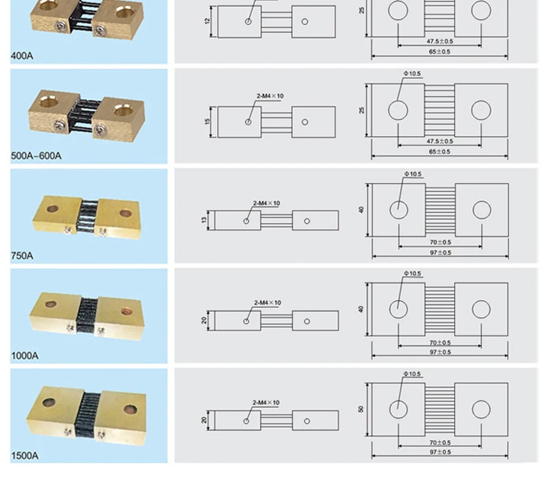 FL-19 Shunt 75A 100A 100A 200A 300A 400A 500A 75mV Welding Machine Brass Resistor DC Shunts For Current Analogue Panel Meter