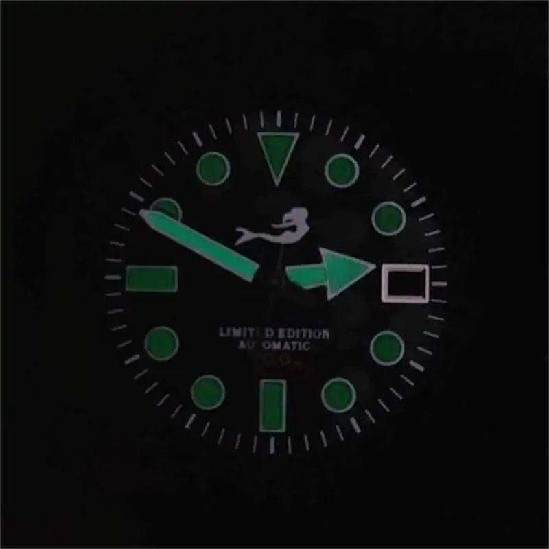 1. Размер циферблата: 28,5 мм 2. Окно циферблата: день 3. Индексы: белый 4. Светящийся: черный(Светящийся темно-зеленый