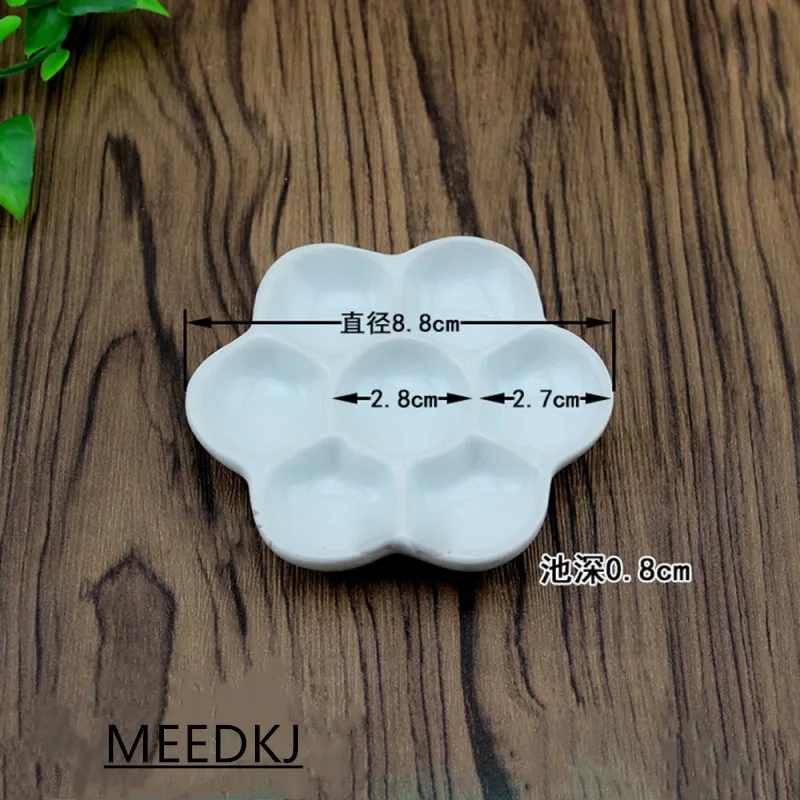 Керамическая палитра подходит для гуаши и акварельных пигментов, которые смешиваются с водой. Гуашь и акварельные пигменты не подходят для деревянных цветовых палитр. После длительного использования деревянных цветовых палитр пигментные компоненты впитываются в деревянные цветовые палитры и легко смешиваются с новыми пигментами.