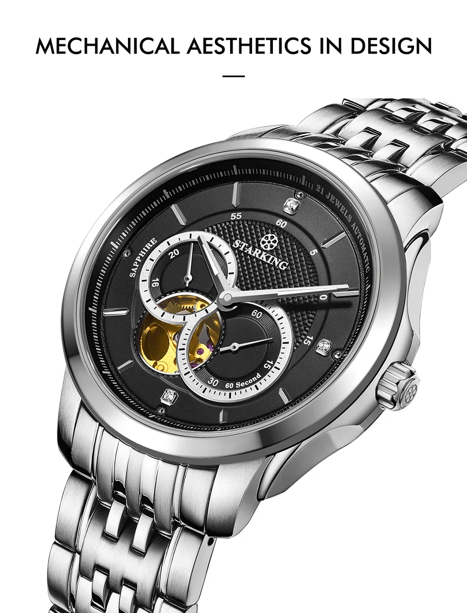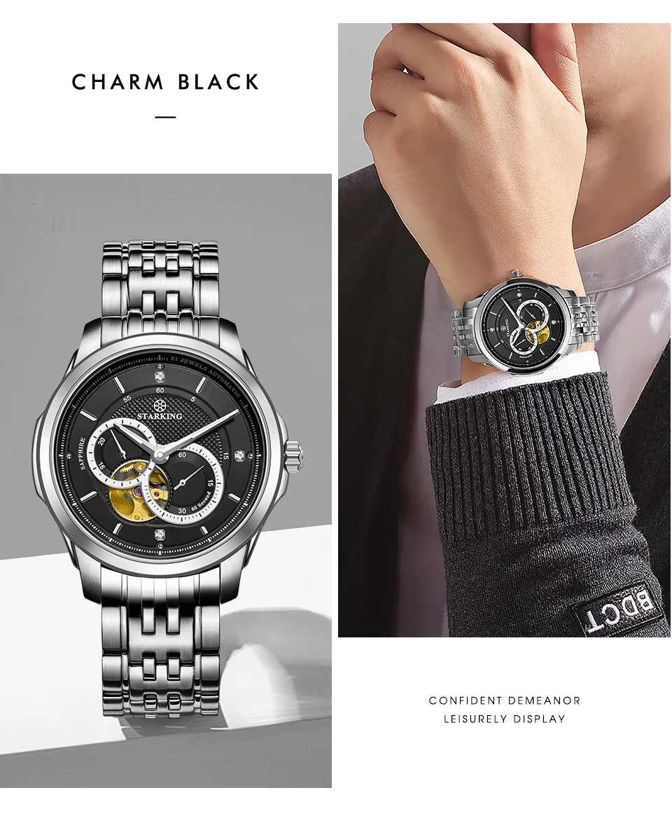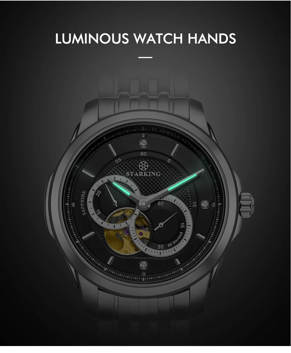 STARKING мужские часы Механические наручные часы для мужчин автоматические MIYOTA 82S7 Move мужские роскошные светящиеся водонепроницаемые часы с скелетом