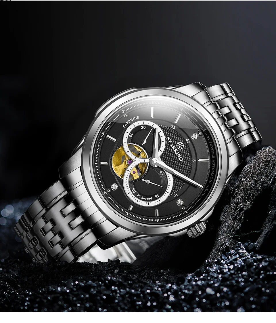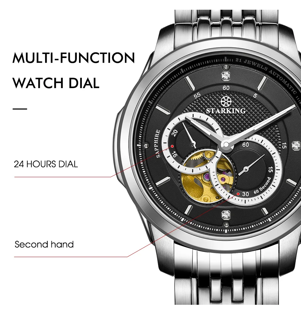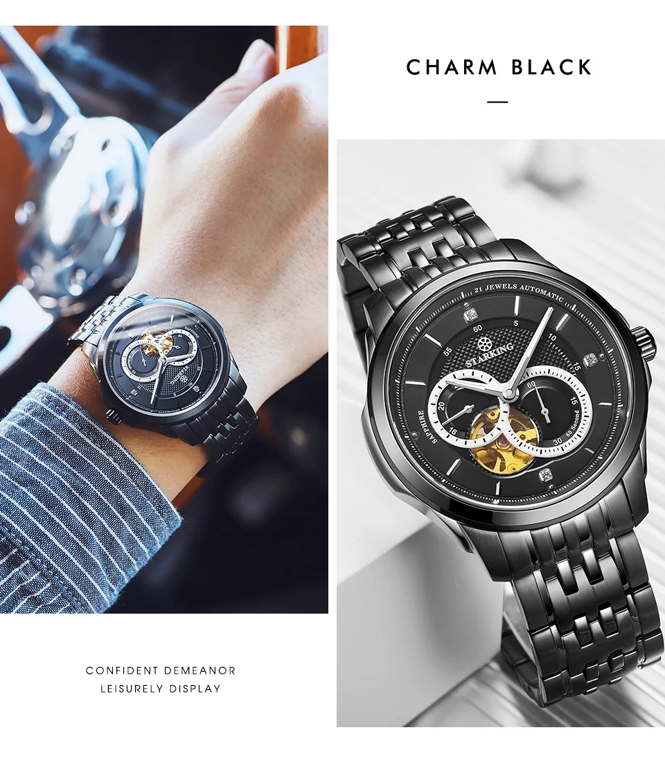 STARKING мужские часы Механические наручные часы для мужчин автоматические MIYOTA 82S7 Move мужские роскошные светящиеся водонепроницаемые часы с скелетом