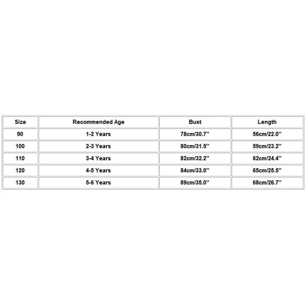 Размеры Рекомендуемый возраст Обхват груди Длина 90 Для детей от 1 до 2 лет 78 см/30,7'' 56 см/22,0'' 100 От 2 до 3 лет 80 см/31,5'' 59 см/23,2'' 110 От 3 до 4 лет 82 см/32,2'' 62 см/24,4'' 120 От 4 до 5 лет 84 см/33,0'' 65 см/25,5'' 130 От 5 до 6 лет 89 см/35,0'' 68 см/26,7''