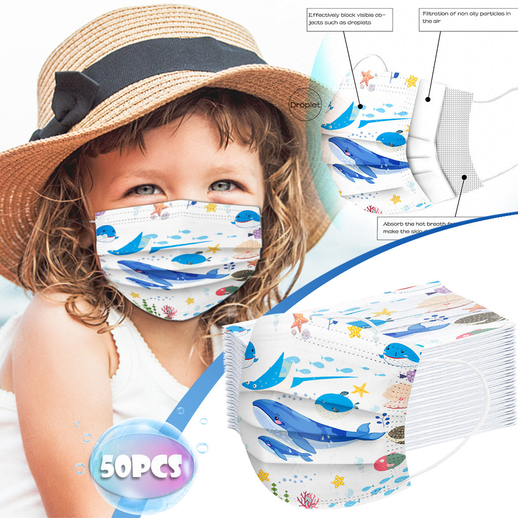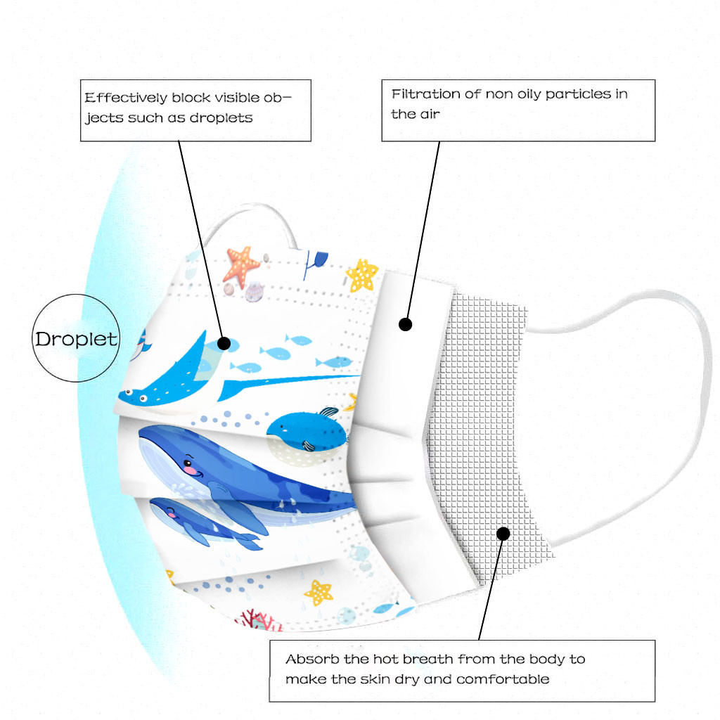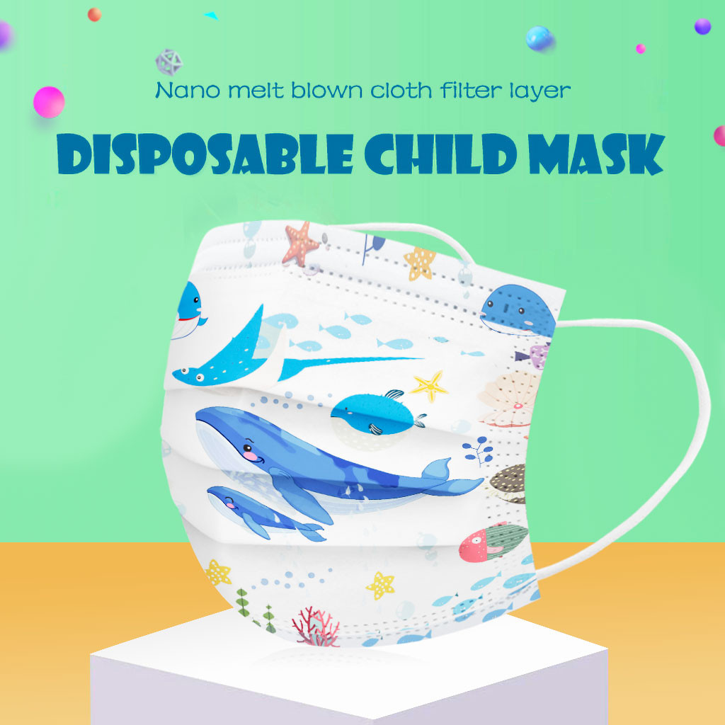 Детская одноразовая маска для лица cubre bocas, промышленная 3-слойная Ушная петля, защищающая дышащую морскую тематику, маска для лица для детей, быстрая доставка