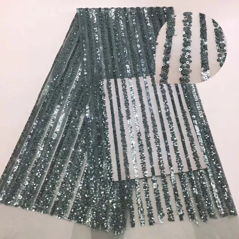 Новый Африканский новейший дизайн, 5 ярдов, высокое качество, тюль, ткань с бусинами, блестки, в полоску, дизайн, однотонная, простота, мода для Daliy