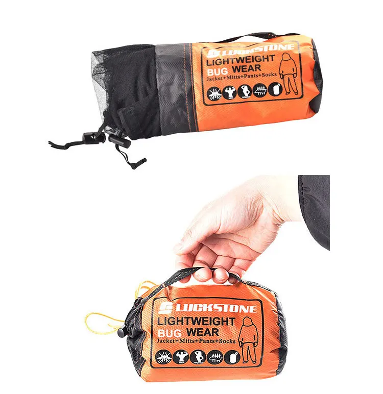 Цена на отдельную антимоскитную куртку (включая Головной убор)/Антимоскитные ножки/Антимоскитные перчатки упакованы в отдельный ОПП пакет. Весь комплект упакован в мешок-шнурок.