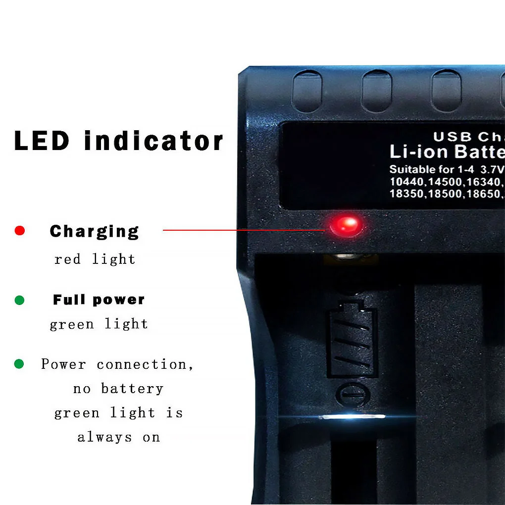 Это зарядное устройство USB 18650 имеет светодиодный светильник индикатора для каждого слота, который станет зеленым, когда батареи полностью заряжены.