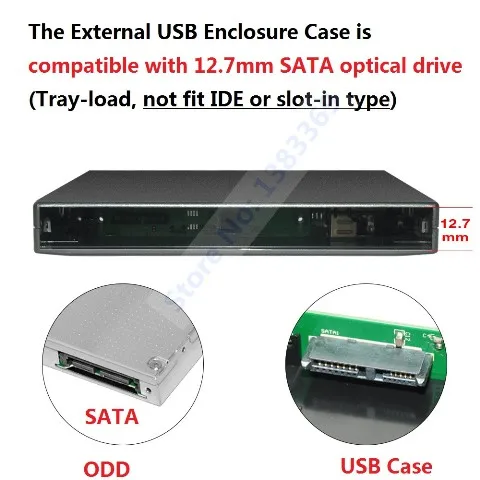 1x USB 2,0 Корпус чехол для ноутбука 12,7 мм SATA лоток Доставка груза компакт-дисков/DVD привод ODD(В комплект не входит оптический привод)