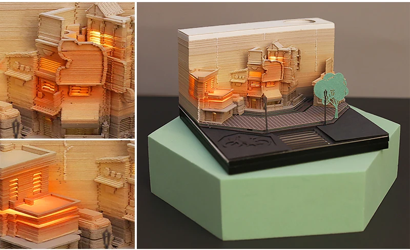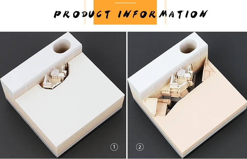 Материал: бумага Стиль: 3d архитектура Размер: 80*80*40 мм Страница: 120-160 листов Посылка включает в себя: 1x блокнот с акриловой коробкой Примечание: светильник и различные дисплеи могут привести к тому, что цвет товара на картинке немного отличается от реального. Допускается погрешность в измерениях +/- 1-3 см.