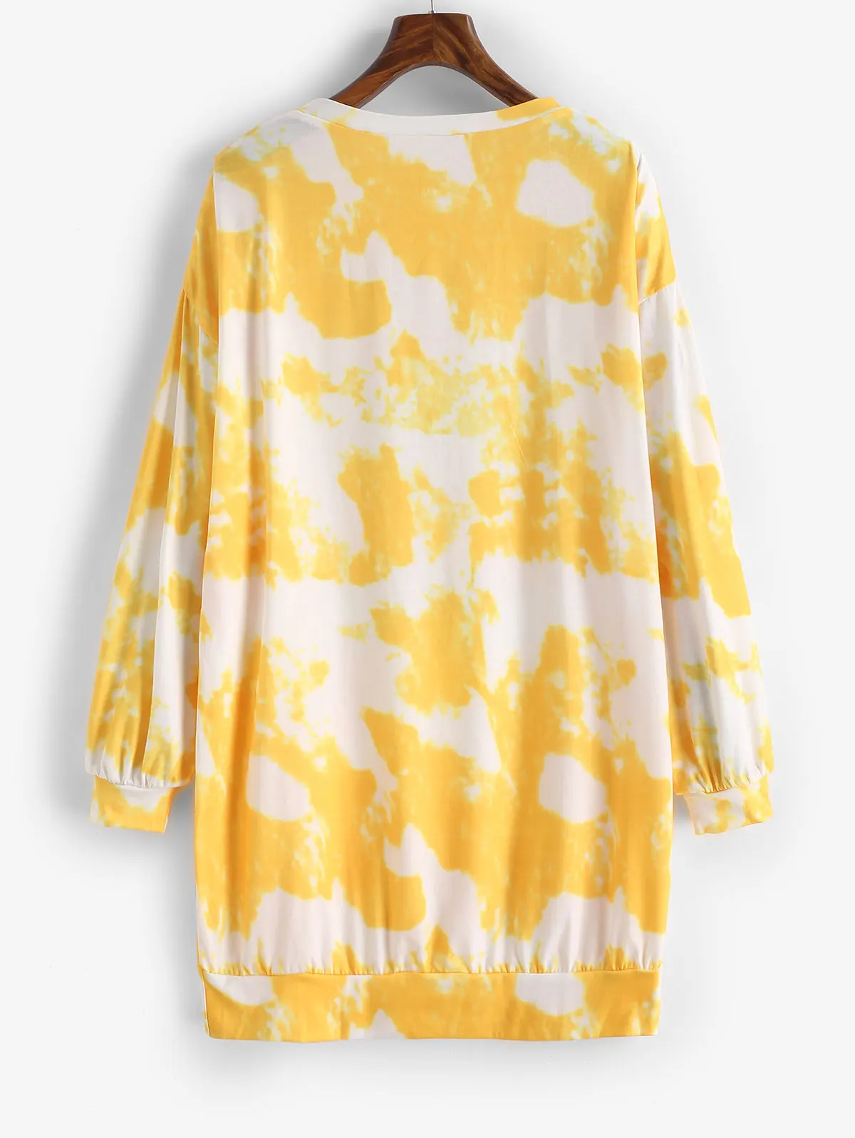 Полностью покрыта привлекательной краской для галстука, чтобы осветить день, это платье-толстовка с громоздкими рукавами хорошо подходит для выходных с открытыми плечами, чтобы расслабить руки и создать модную переднюю забавную солнечную графику.