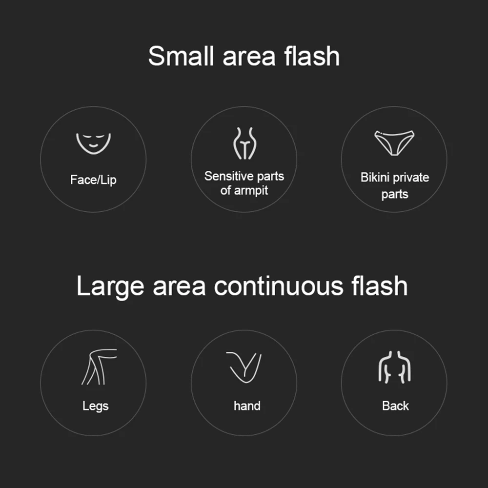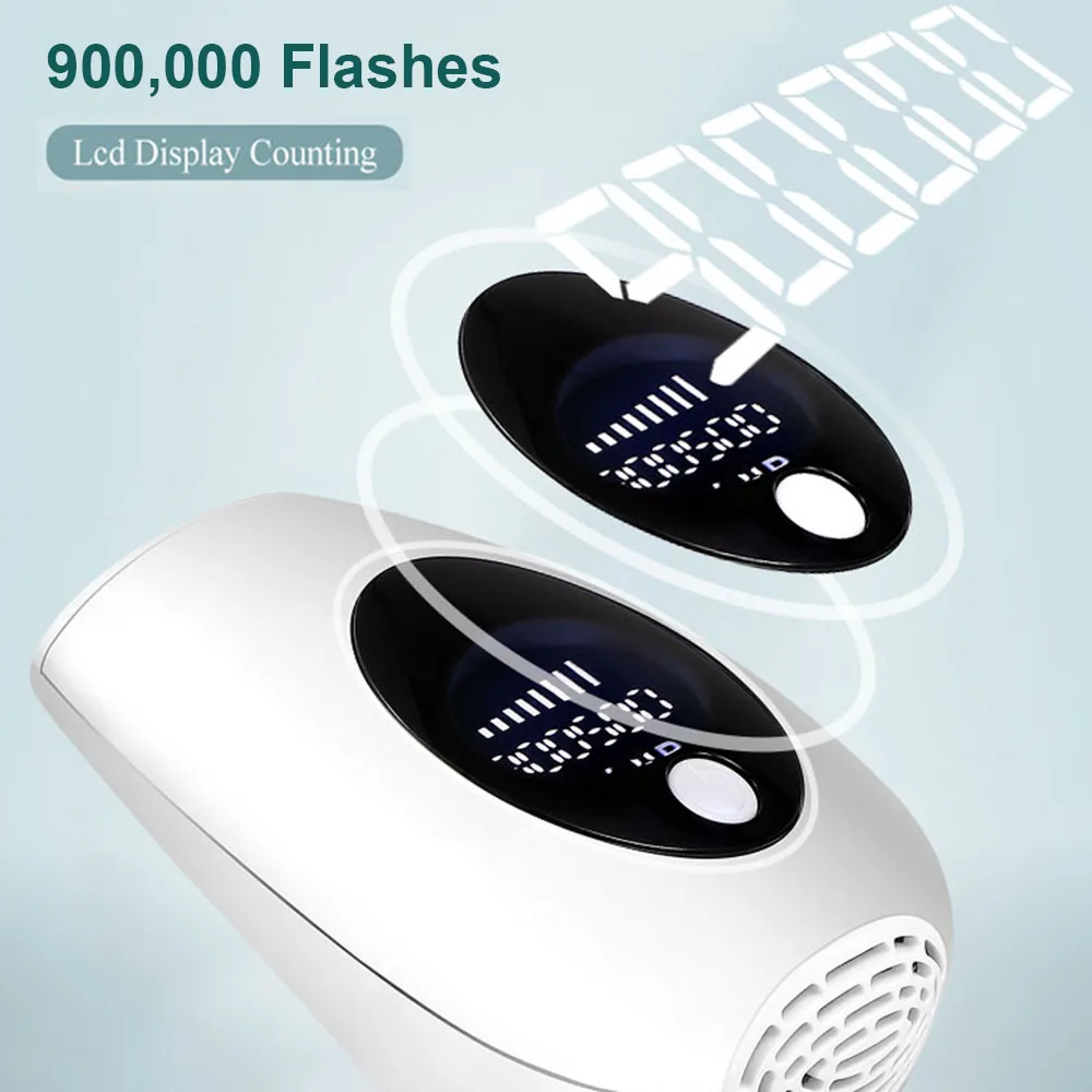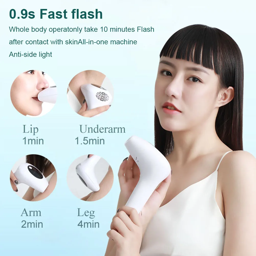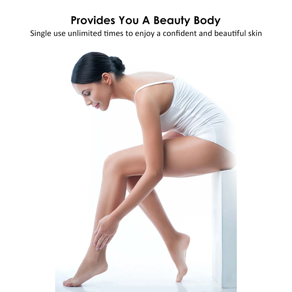 * 900000 flashes design. It use exclusive pulsed light IPL technology: quick, painless and gain almost permanent hair removal effcect.