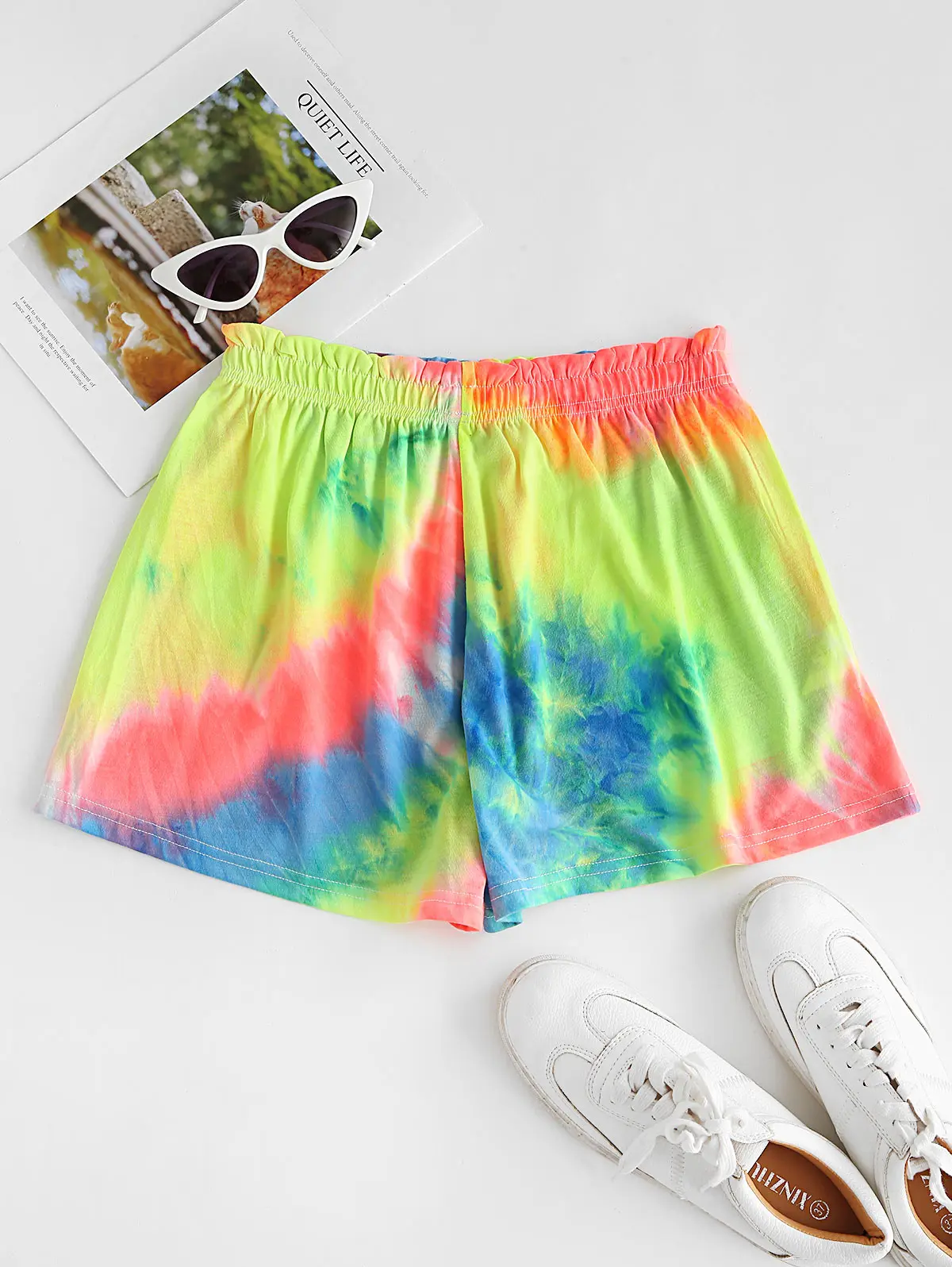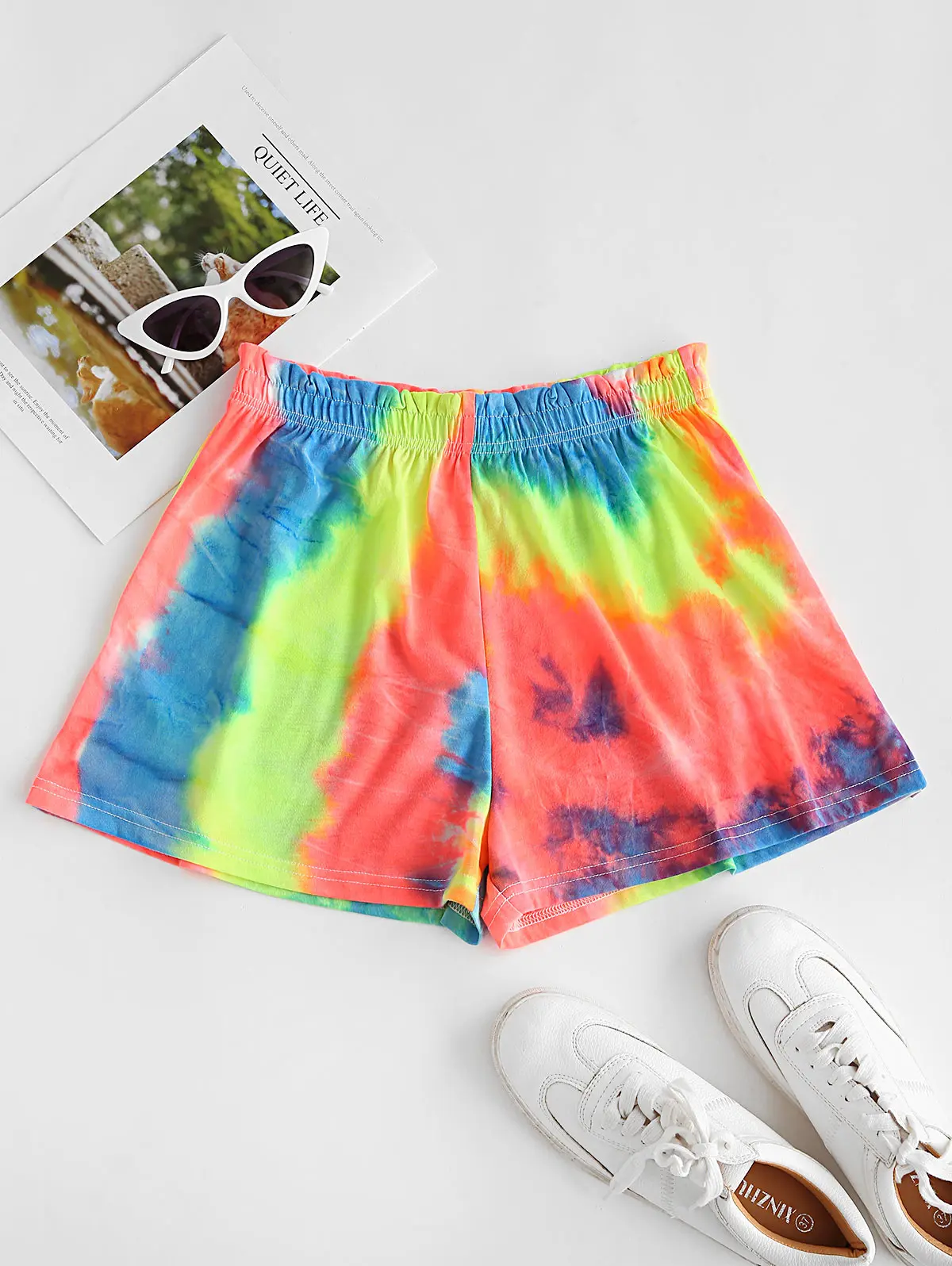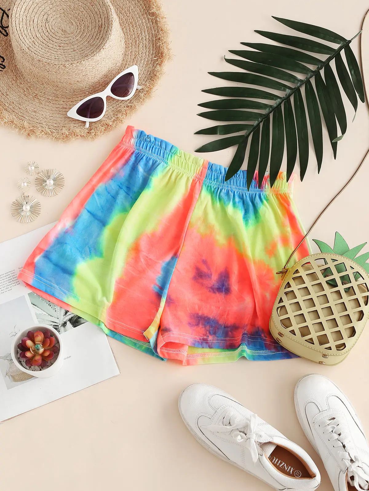 Эти мягкие удобные шорты с разноцветным узором в виде галстука-красителя прекрасно сочетаются с вашими любимыми укороченными топами.