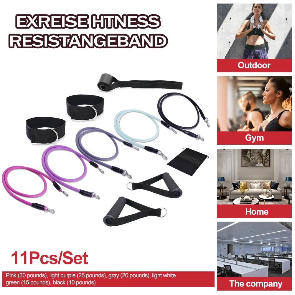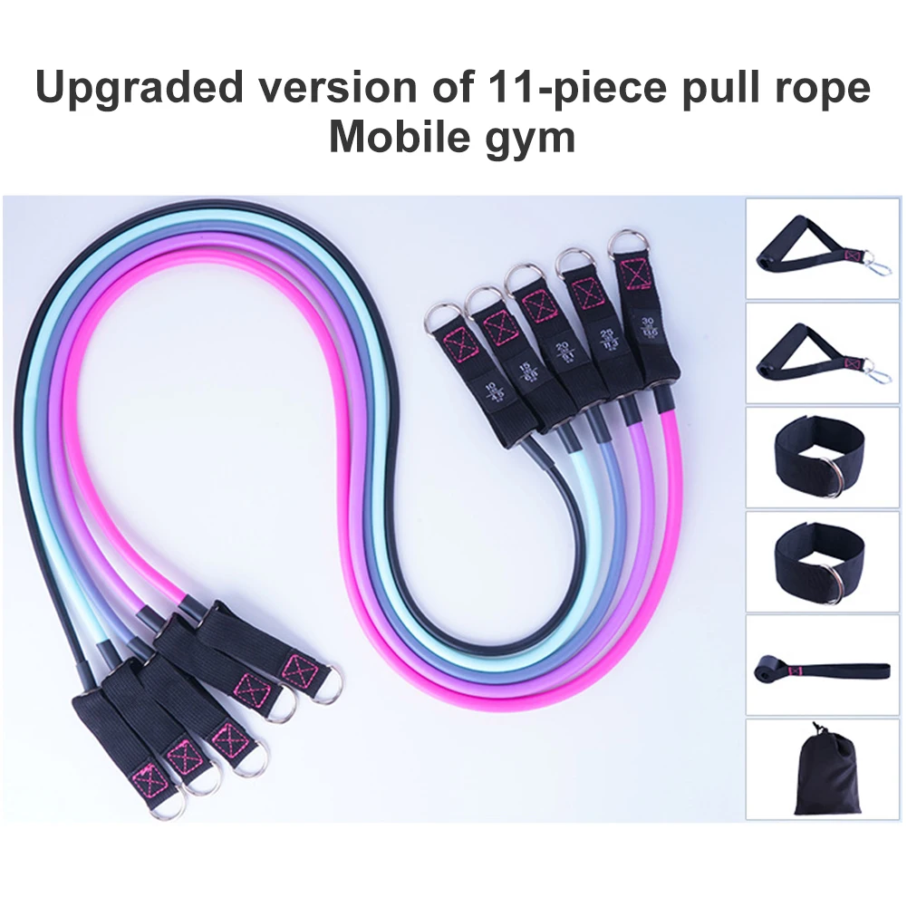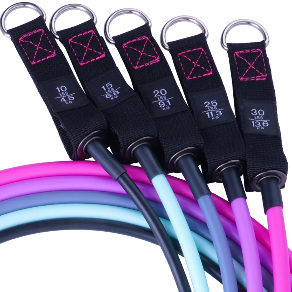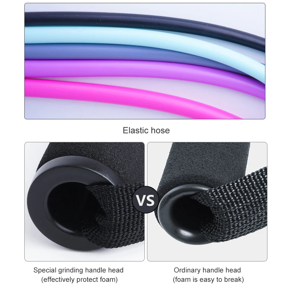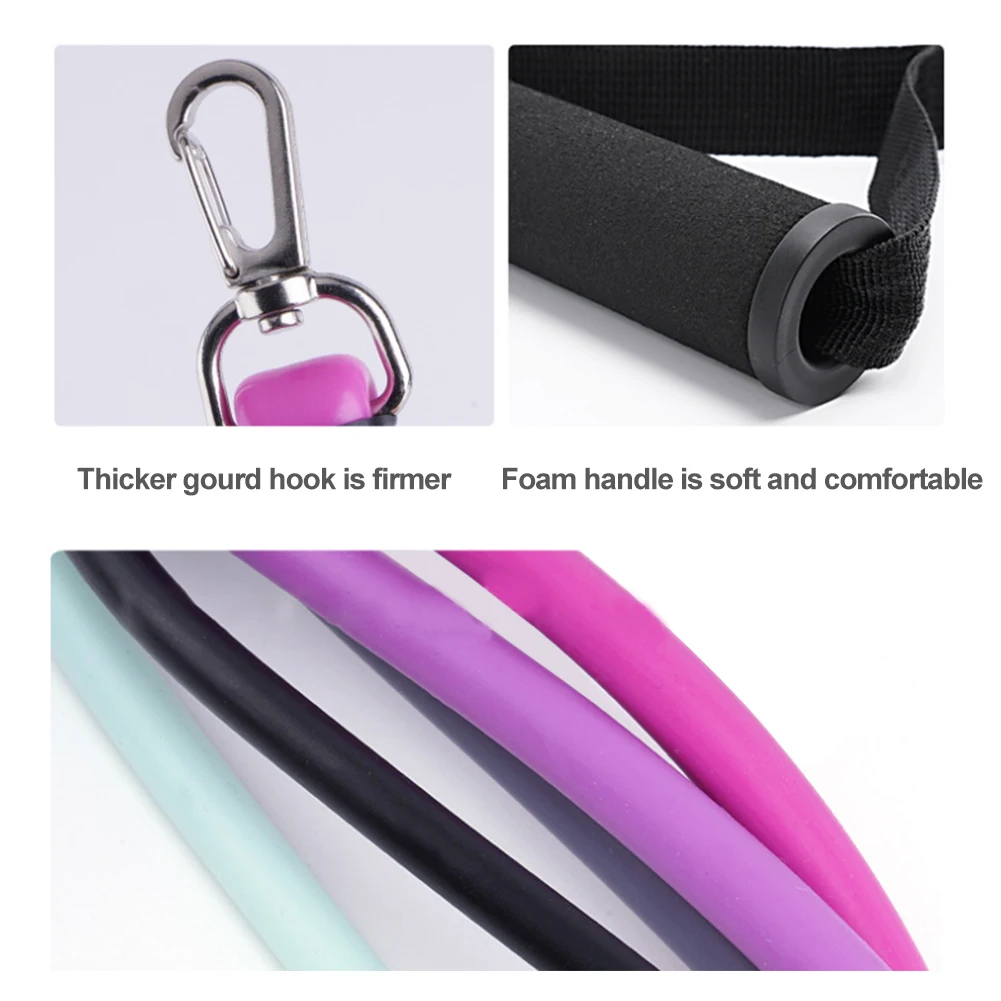 *2.There are five different sizes of tension rope, which will produce a total of 100 pounds of tension. You can also adjust it according to your requirements. Different colors of tension rope will have different pounds, including 30 pounds for pink, 25 pounds for purple, 20 pounds for gray, 15 pounds for light white green, and 10 pounds for black.