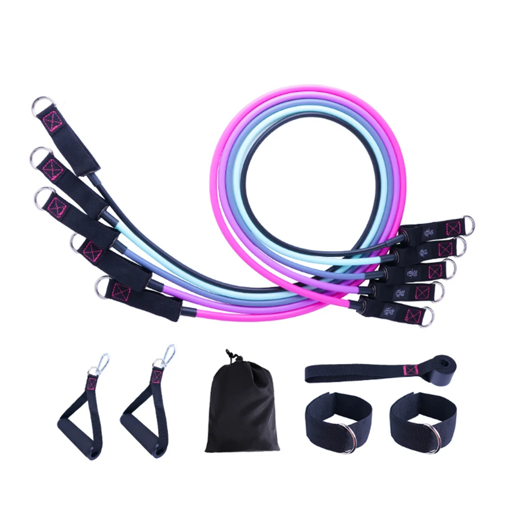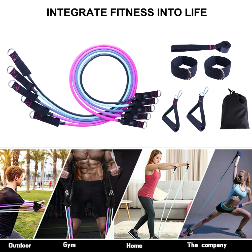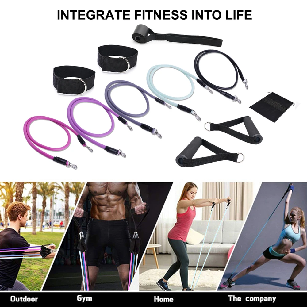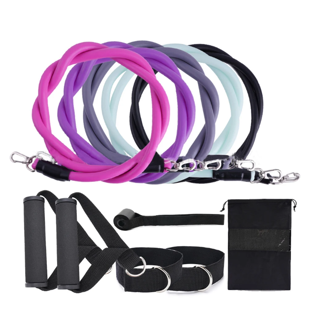 *2.There are five different sizes of tension rope, which will produce a total of 100 pounds of tension. You can also adjust it according to your requirements. Different colors of tension rope will have different pounds, including 30 pounds for pink, 25 pounds for purple, 20 pounds for gray, 15 pounds for light white green, and 10 pounds for black.