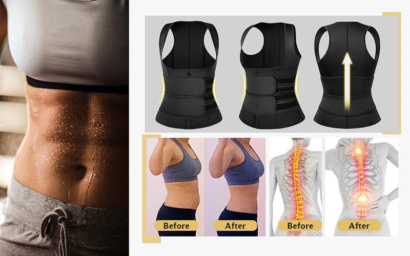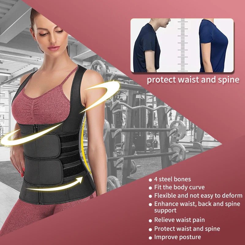 ✅Material - Made of 2.1mm high-quality fabric, Shell: 100% Polyester; Lining: 100% Neoprene, Smooth, comfortable, close-fitting, can be worn inside and outside, good elasticity, not easy to wrinkle. And it has excellent performance in burning fat. ☞Package Quantity: 1x Waist trainer vest.★Tips: Please remove the protective material of the hook before use. ✅Tummy Control Waist Trainer Vest with Adjustable Double Straps -The abdomen double-layer compression design is continuous Full and Double Coverage for the tummy, more calories burned, more sweat comes, makes the abdomen effect more obvious. U-type Anti-droop Breast design which keeping push up and firm breasts,effectively prevents muscle damage caused by strenuous exercise in the chest. Vest + zipper closure combination design, and sticky adhesive. Easy to adjust the size. ✅Sweat and Burn More Calories: Quality 2.1mm sweat neoprene fabric tones core by increasing thermal temperature and calorie burn for maximized performance. Waist trainer vest acts as a thermal stomach wrap vest, increasing sweat around your abdomen and lower back area helping you lose water weight while toning your body, shape the perfect body and also to maintain muscle temperature as well to prevent fatigue and injury during exercise.Give you a perfect waist trimmer vest + waist trainer. ✅Waist Trainer And Back Support - Our neoprene waist trainer corsets for weight loss, which built-in 4 STEEL BONES, provide enough support for back pain relief and correct your posture. It is the best fitness equipment for all kinds of exercises in the gym.