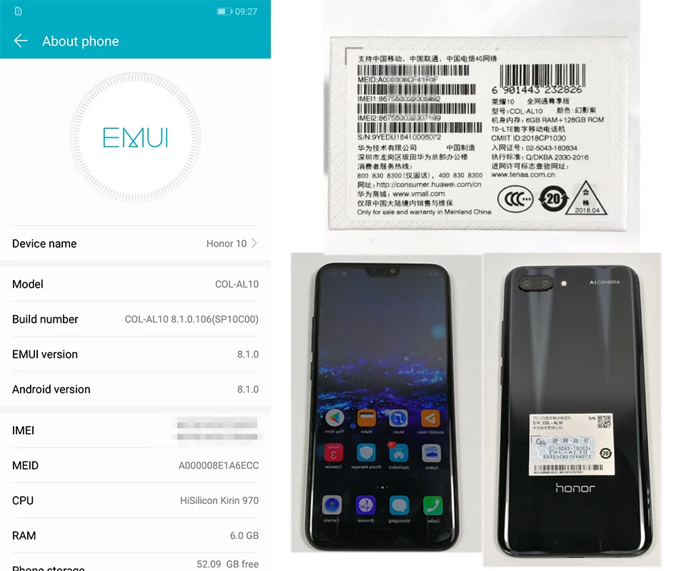 Особенность Honor 10: 1. ЦП ------------ Kirin 970 Octa Core 2. Экран ---------- 5,84 дюймов, 2280x1080p 3.RAM+ ROM------6GB + 64 Гб; 6 ГБ + 128 Гб 4. Камера -------- двойная задняя (16.0MP + 24.0MP)+ фронтальная камера 24.0MP 5. Аккумулятор -------- 3400 мАч (typ), поддержка honor supercharge 6. ОС -------------- Android 8,1 7. Другие ---------- GPS, Bluetooth,Wifi, идентификация отпечатков пальцев, распознавание лица, NFC 8. Сеть ------- 2G:GSM: 850/900/1800/1900 МГц 3G: WCDMA: B1/B5/B8;CDMA:BC0 4G:LTE-FDD: b1/B3/B5/B8 9. Стандартный комплект: 1 x оригинальный телефон honor 10 1 x оригинальное зарядное устройство (супер быстрое зарядное устройство) 1 x USB кабель 1 x пользователь Мануэль (китайский) Бесплатные подарки: 1 x стеклянная пленка с полным покрытием 1 x чехол из ТПУ 1 x правильный штекер (EU/AU/UK)