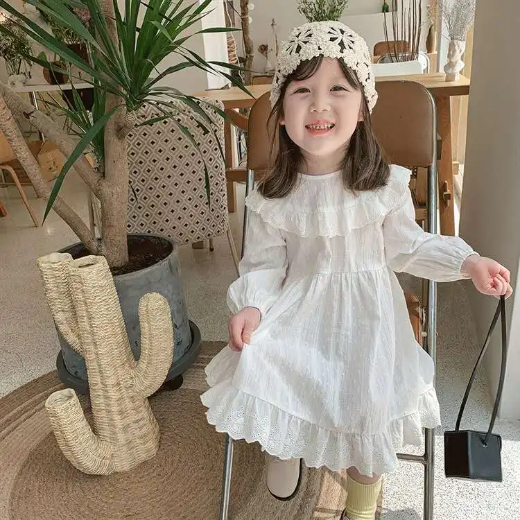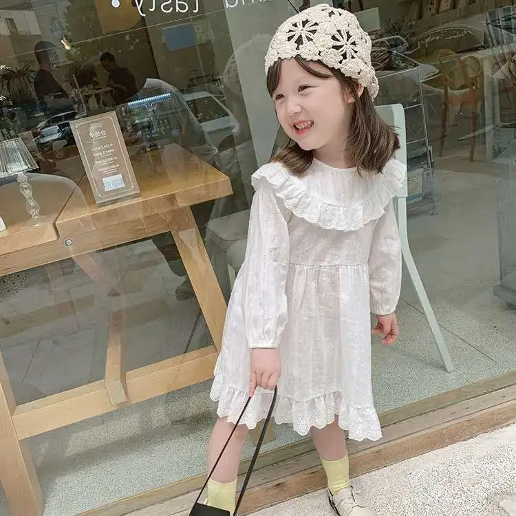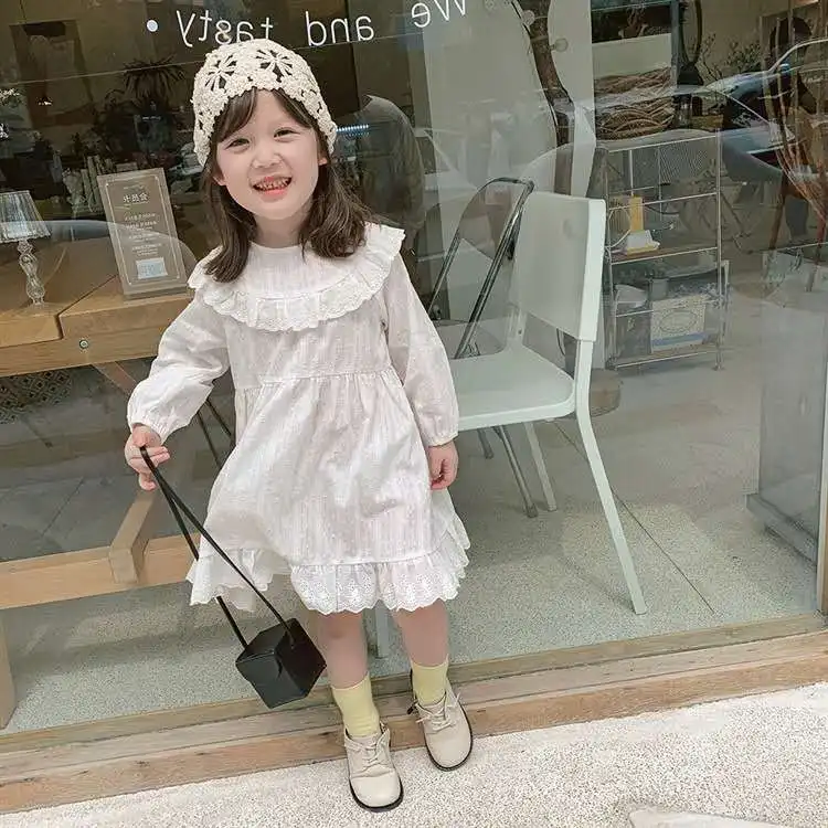 2020 Новое корейское осеннее платье для девочек с длинными рукавами, кружевная длинная юбка, милое платье принцессы с кукольным рукавом