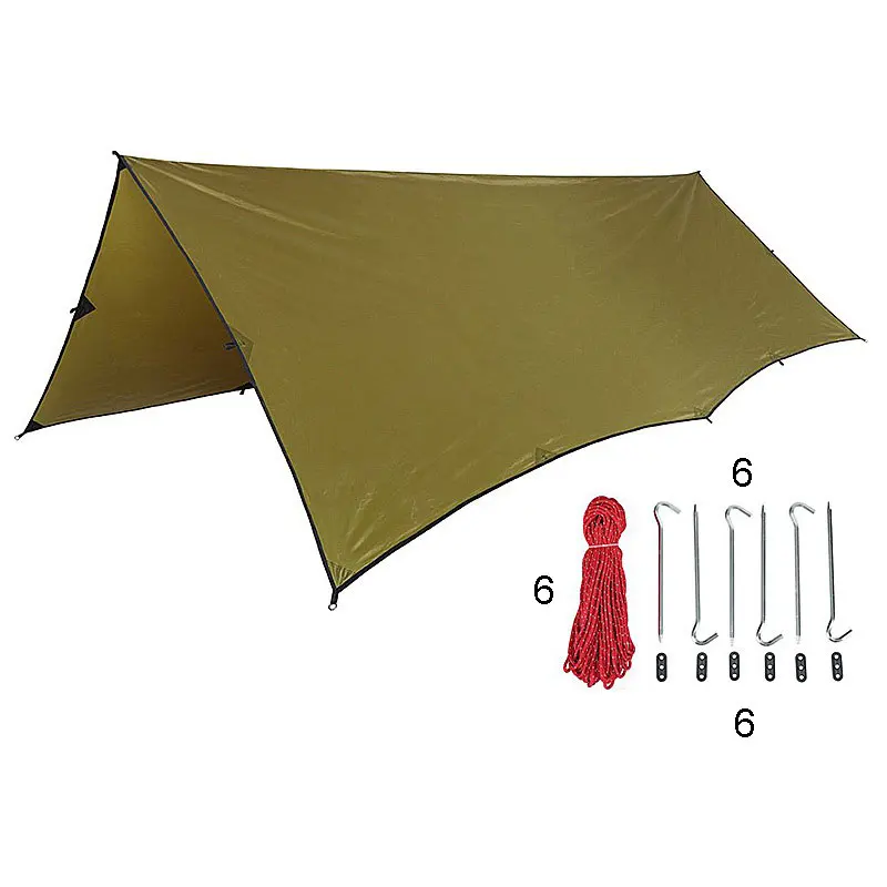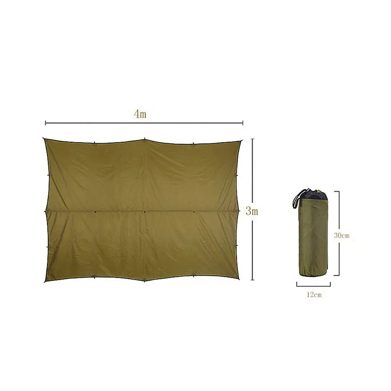 Название: открытый многоцелевой занавес для неба Размер: 4*3 метра, подходит для 3-4 человек Материал: 210T полиэстер Тафта плед Цвет: коричневый Вес: 1080 г Примечание: аксессуары включают только 6 ветровых канатов, 6 ветровых пряжки для веревки и 6 гвоздей. Для других аксессуаров, пожалуйста, свяжитесь с нами для покупки отдельно! Этот навес изготовлен из полиэфирной тафты 210T. Обладает хорошим водонепроницаемым эффектом и хорошей защитой от солнца и свойствами затенения. Размер 4*3 метра, а соединения обработаны водонепроницаемым клеем для обеспечения использования наружного дождя и снега.