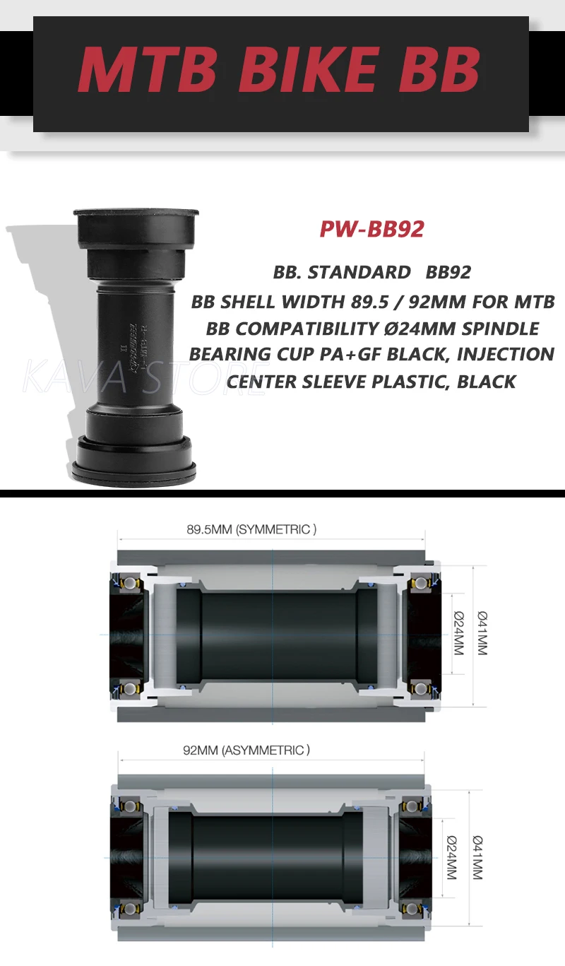 BB Совместимость: BC1.37 "x 24T BB чашки с ∅ 24 мм шпинделем