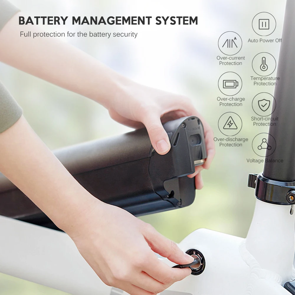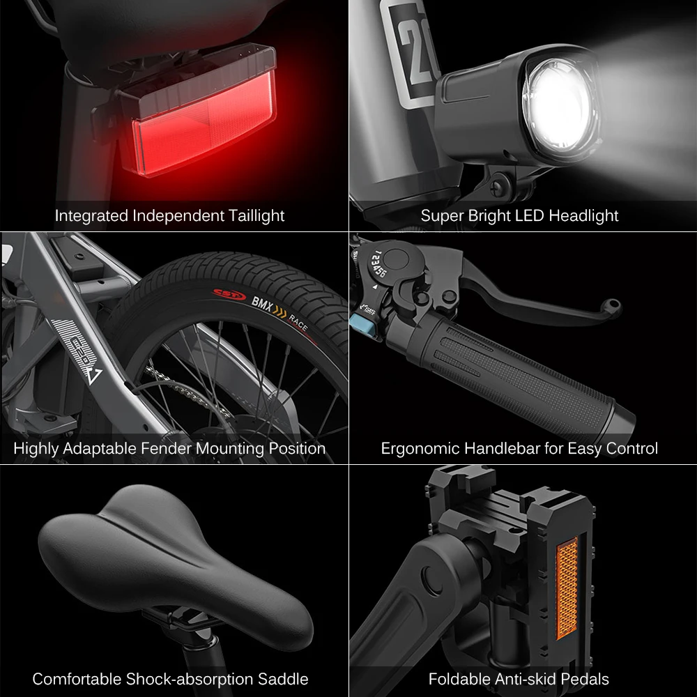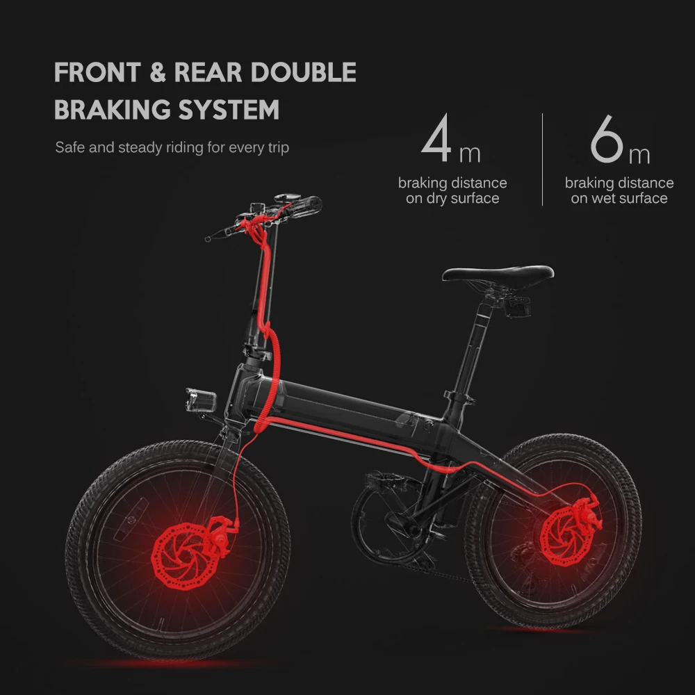 Этот электровелосипед изготовлен из алюминиевого сплава, достаточно прочный, чтобы выдерживать максимальный вес пользователя 100 кг. Велосипед оснащен мощным двигателем мощностью 250 Вт, максимальной скоростью 25 км/ч, системой переключения shiman0 и двойной тормозной системой. Этот электрический велосипед со складной конструкцией очень удобен для поездок.