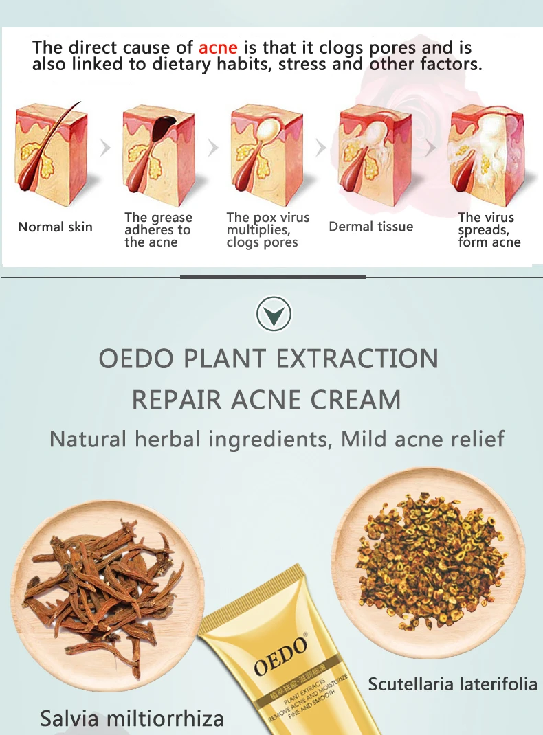 Натуральные растительные ингредиенты, облегчение угревой сыпи 1.Scutellaria laterifolia 2.Salvia miltiorrhiza 3. Мятный