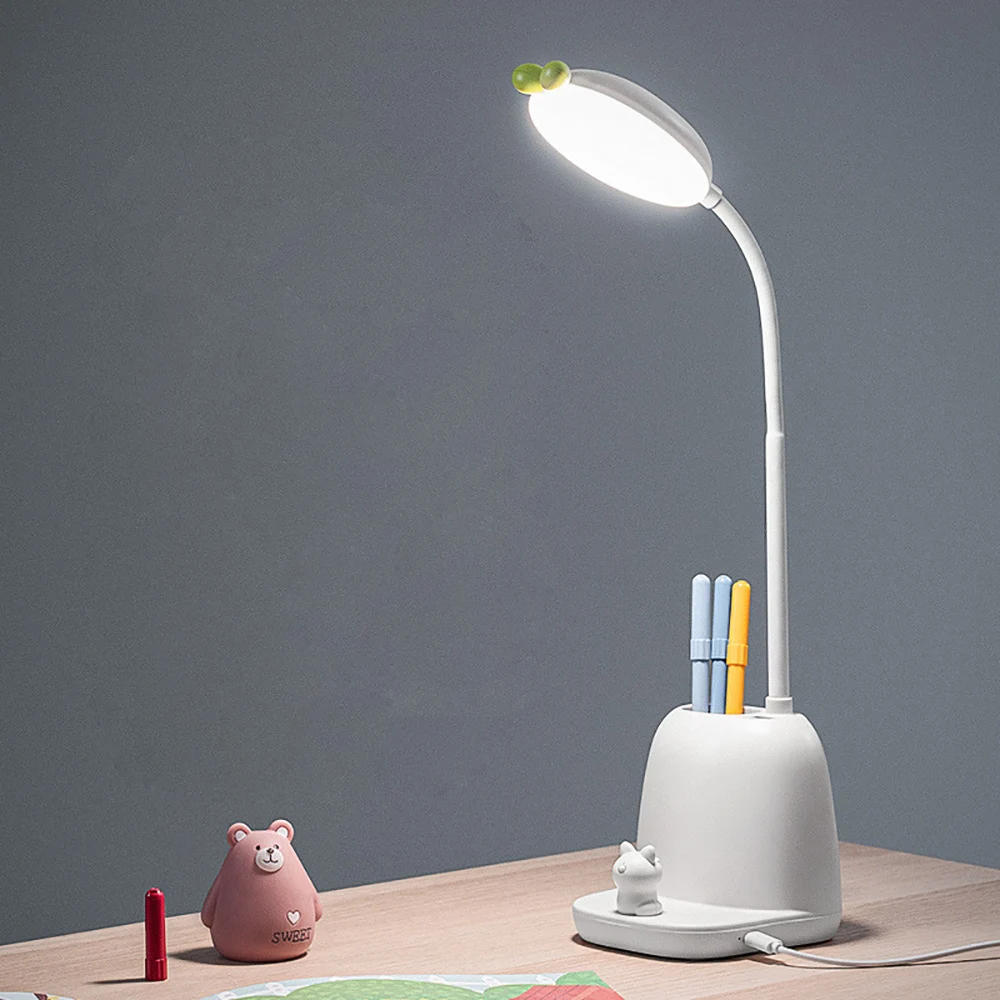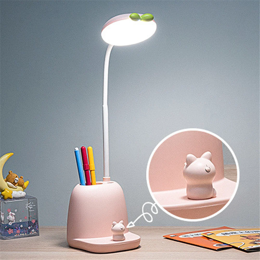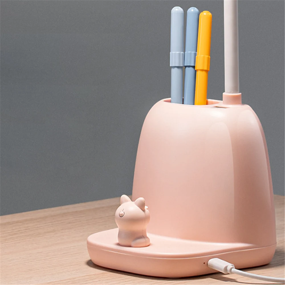 Светодиодный настольный светильник с питанием от USB, милый светильник с регулируемой яркостью и держателем ручки, направленный на хранение различных канцелярских принадлежностей, таких как ручки и ножи, которые могут сделать ваш стол тише.