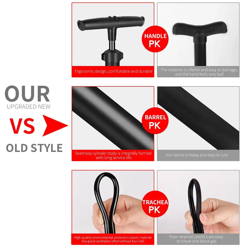【Easy pumping】эргономичная Т-образная ручка обеспечивает «отличное сцепление и толкание силы». Ножной колышек из нержавеющей стали стабилизирует насос на земле, создавая комфортное и эффективное Насосное движение.