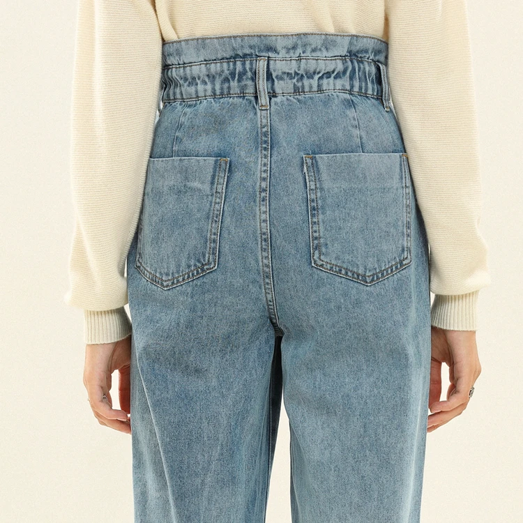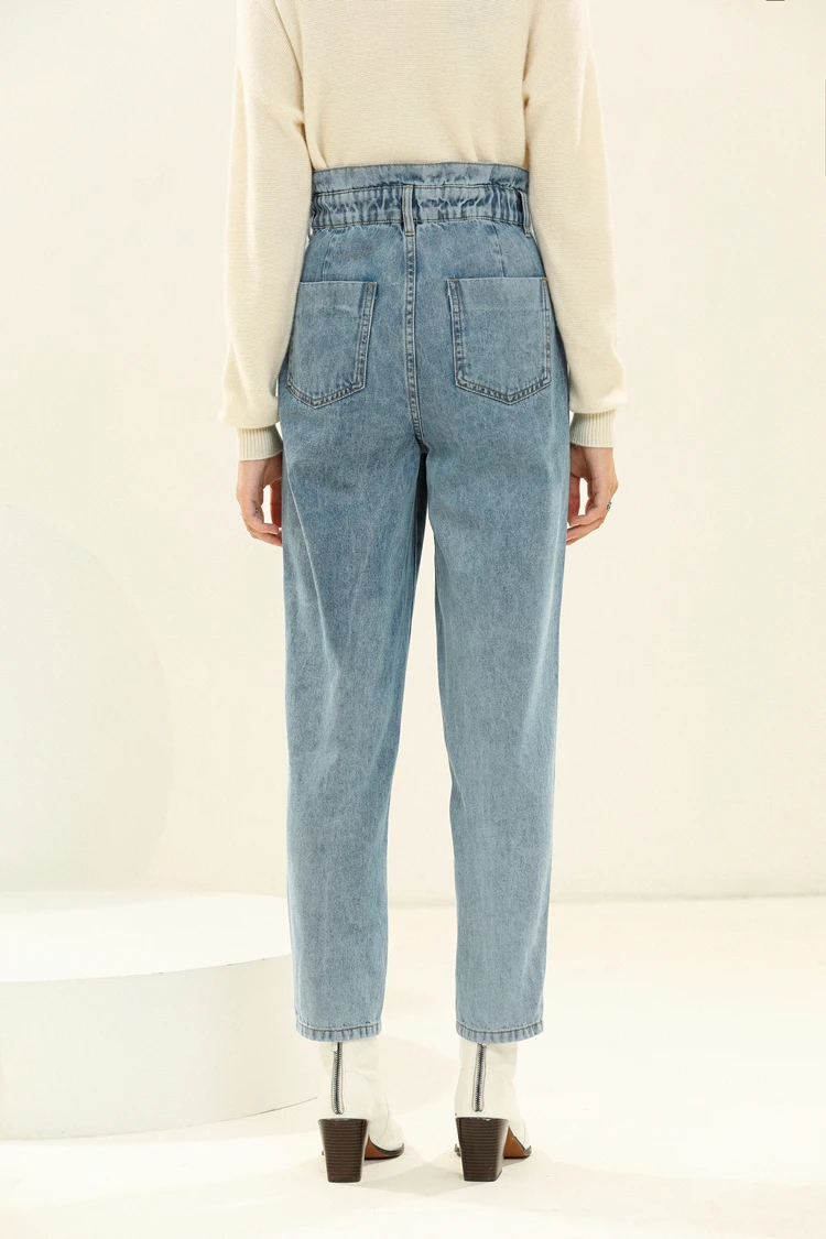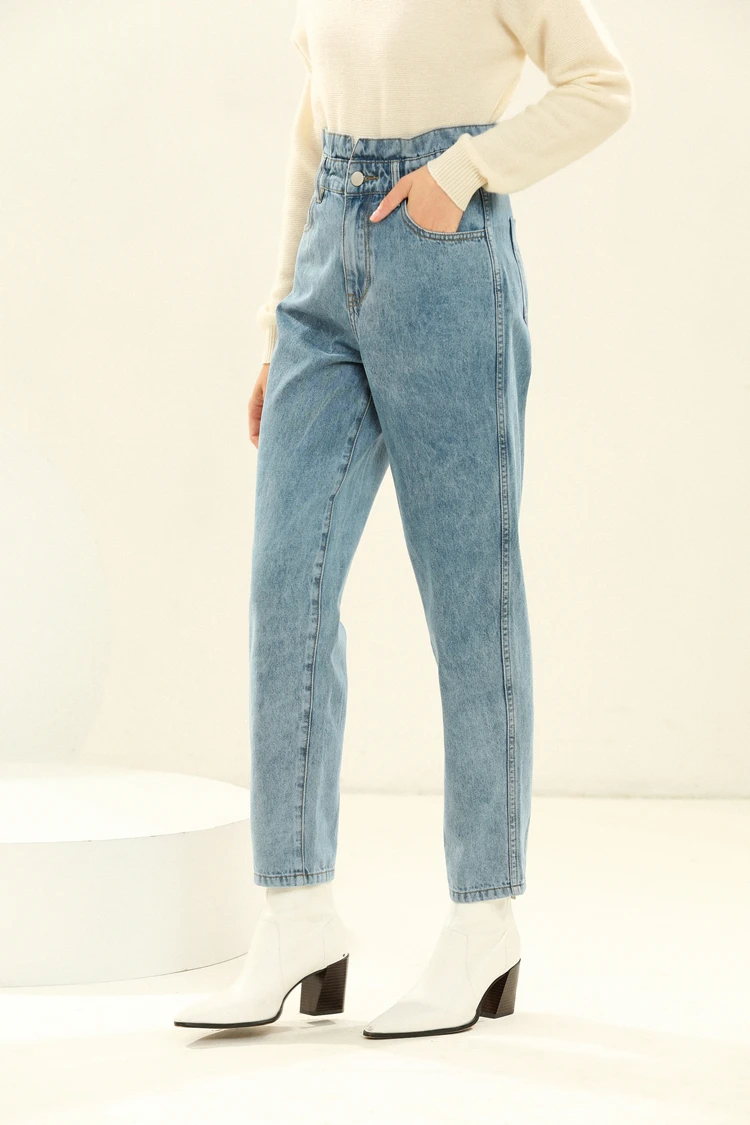 ●Ruffled дизайн пояса ● Неэластичный деним. ● Легкая стирка цвета индиго с потертостями и потертостями. ● Застежка-молния, застежка на пуговицы. ● Классический стиль с пятью карманами. ★Ткань ● 100% хлопок