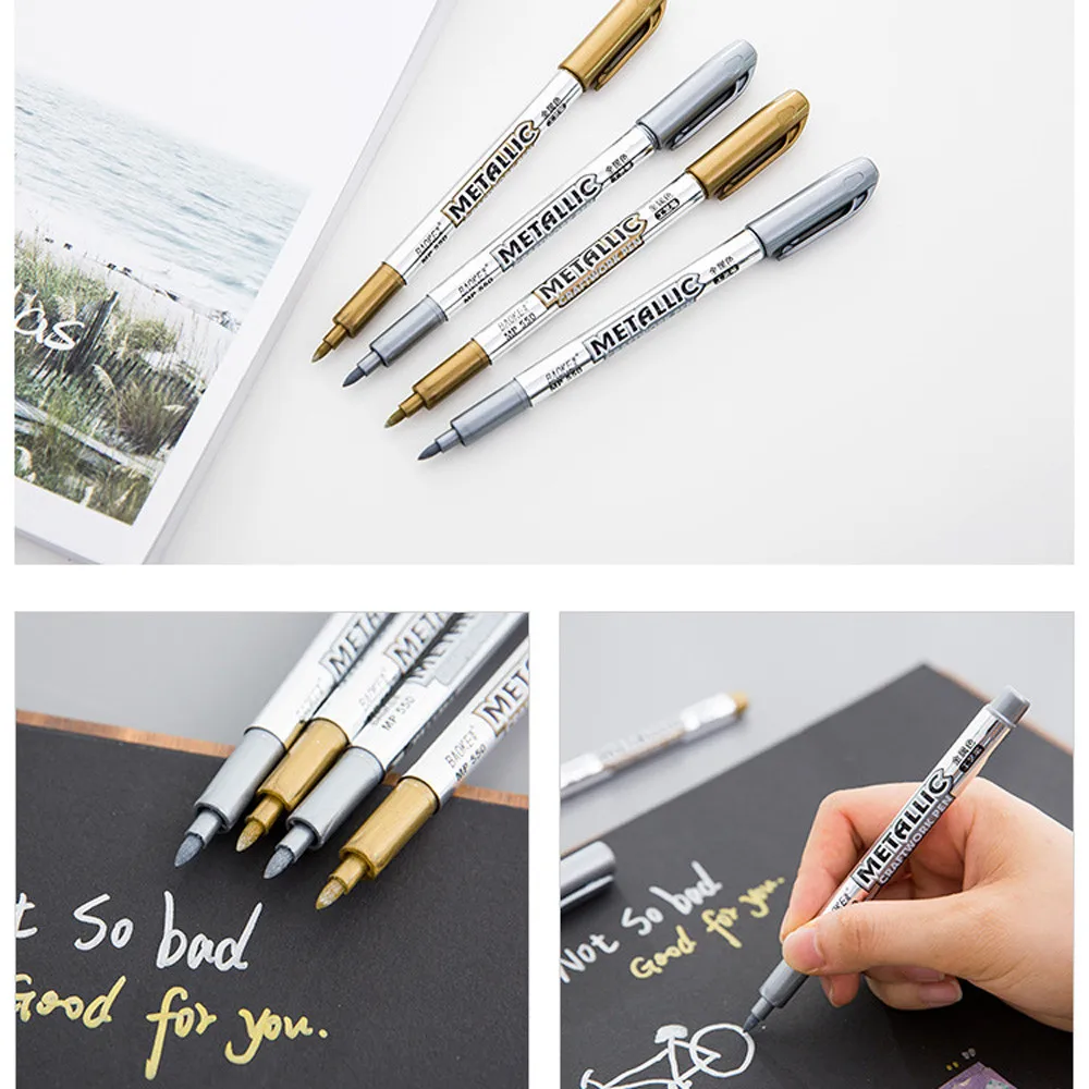 Металлические маркерные ручки золотые и серебряные металлические перманентные маркеры для DIY скрапбукинга ремесла художника иллюстрации